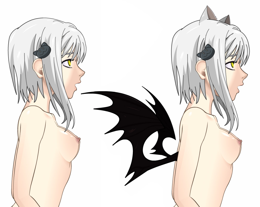 The ears and wings are hidden by default. To make them appear or disappear, you simply left-click on their location. This can be tricky (due to overlying clothing and other SDT layers) so the recommended approach is to press Tab until a highlight bracket appears in the desired position, and then press Spacebar to make the item appear or disappear. Left-clicking anywhere else (e.g. background) will make the highlight bracket go away.