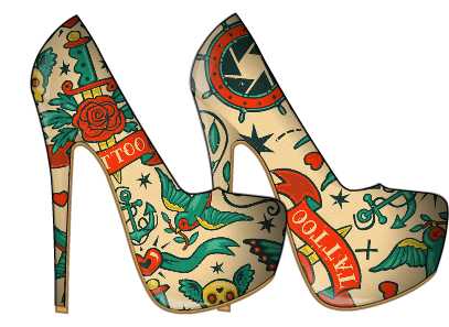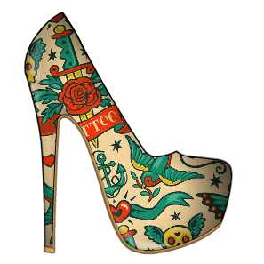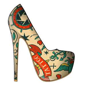 - Solid Color: Platform High Heel Pumps - Tattoo Pattern