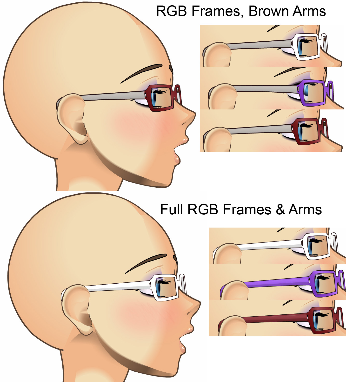 RGB adjustment can now be applied to the arms of the eyeglasses in addition to the frontal frames
