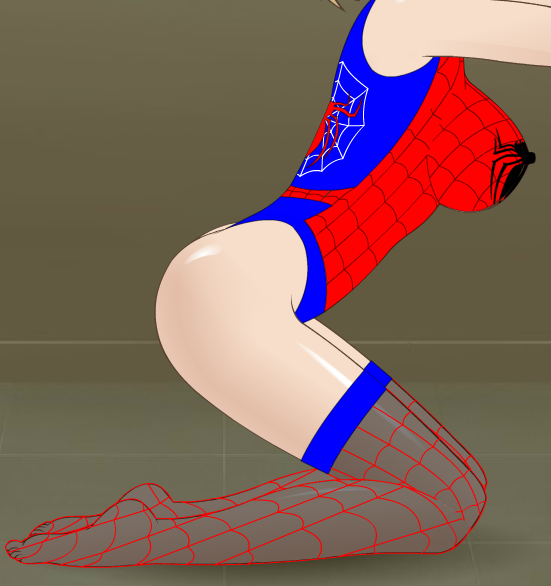 Spider-Man bodysuit with partial breast-slider adjustment and separate stockings