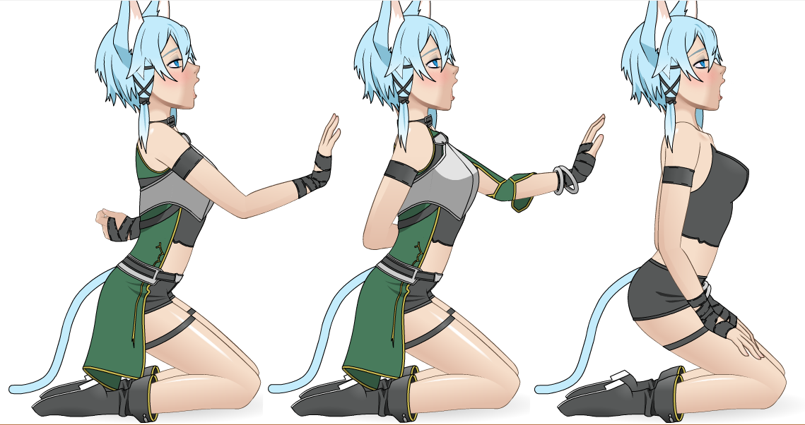Outfit (no coat & no skirt): Kirigaya Suguha Leafa Outfit (Lightwear).swf - Loader REQUIRED - Embeded charcode that loads the game default panties (Obsolete, check updates tab).