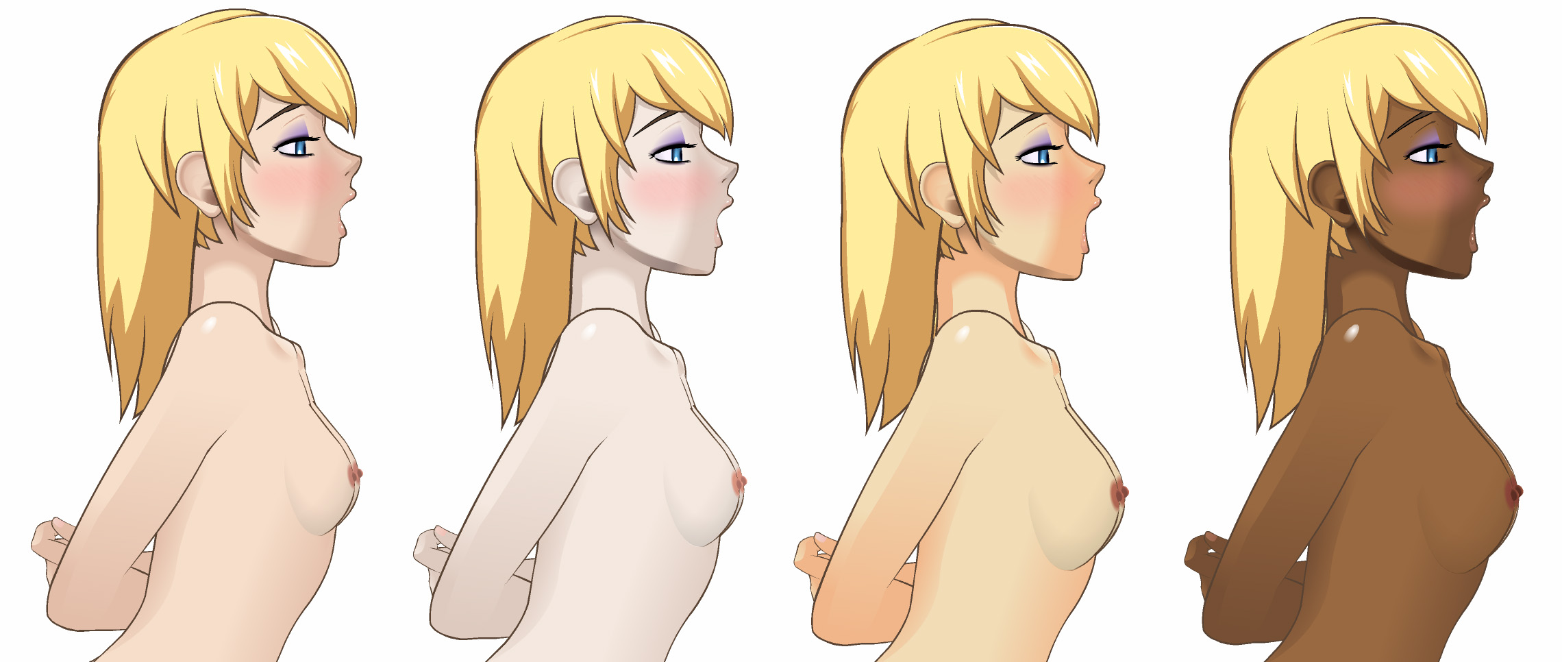 Moderator's note: The artwork in this mod was created entirely by R Rusty66 (aka Rusty). @stuntcock added the skin-switching code and adjusted the colors to fit the skin tones that Rusty had omitted. If you notice any technical flaws in this mod then I can try to fix them, but please don't ask me for additional breast-shapes variations.