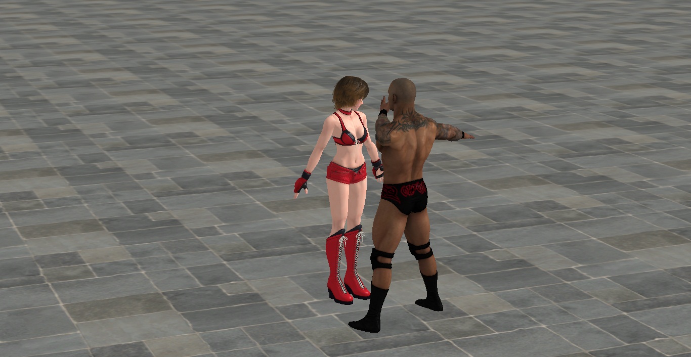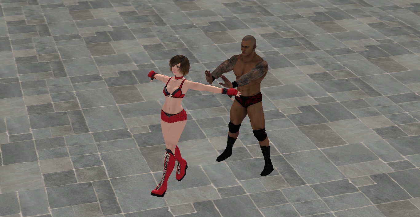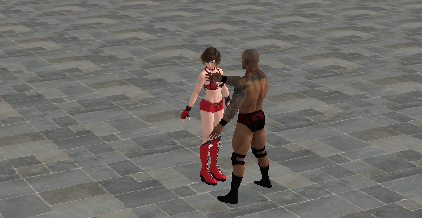 Reiko is stunned, she never felt such powerful strikes, and falls right between Orton´s