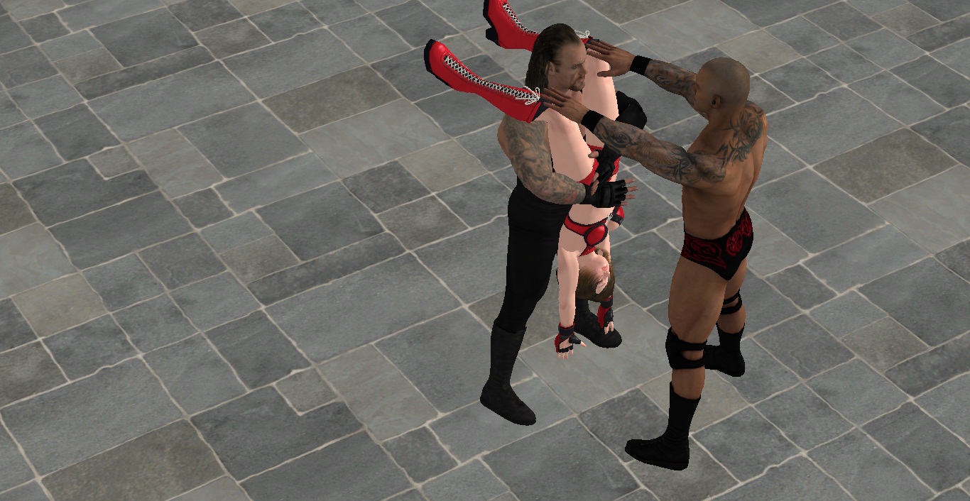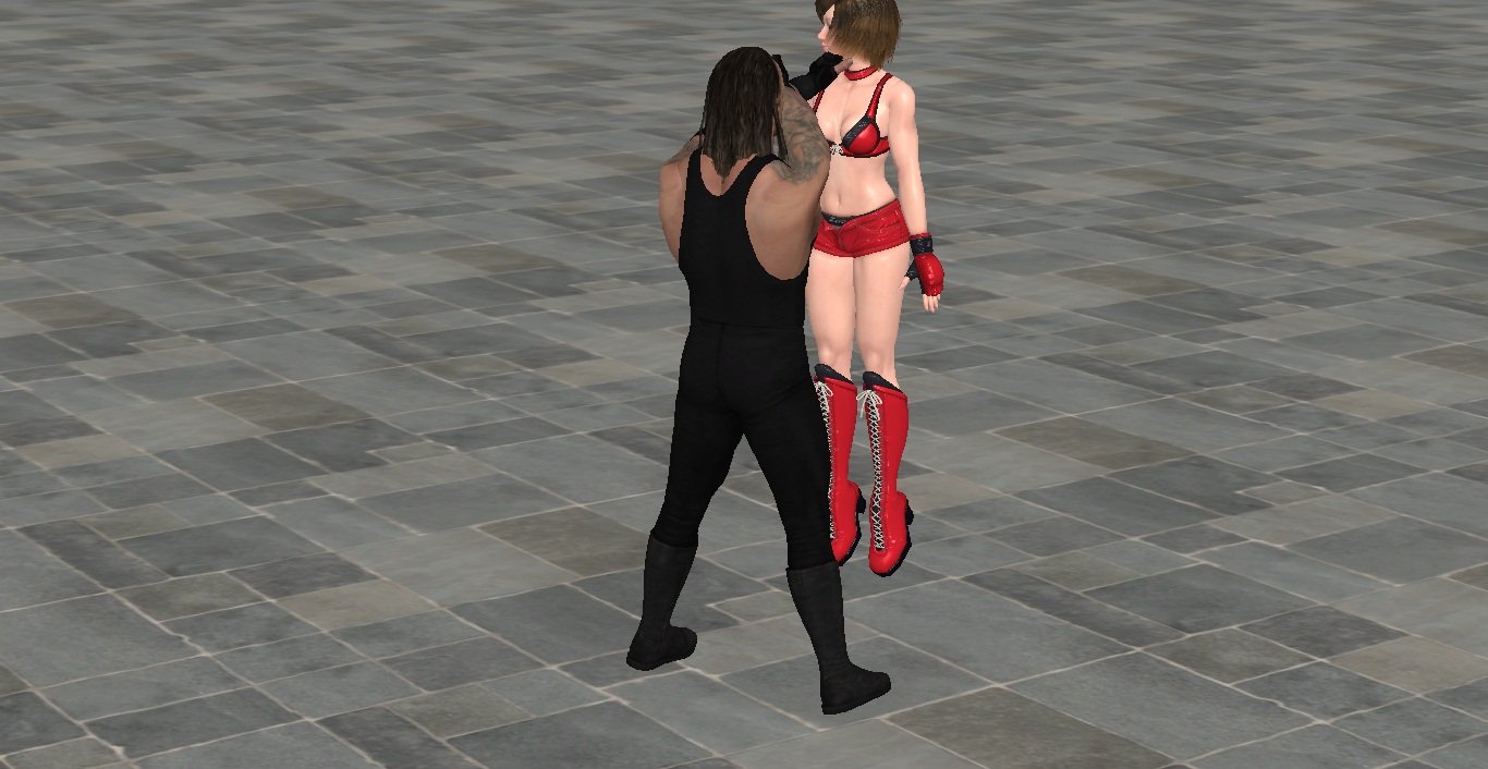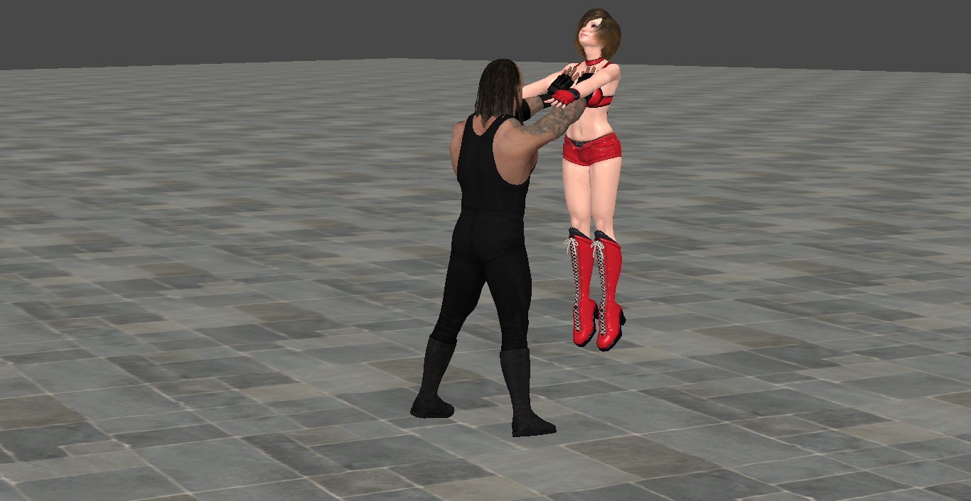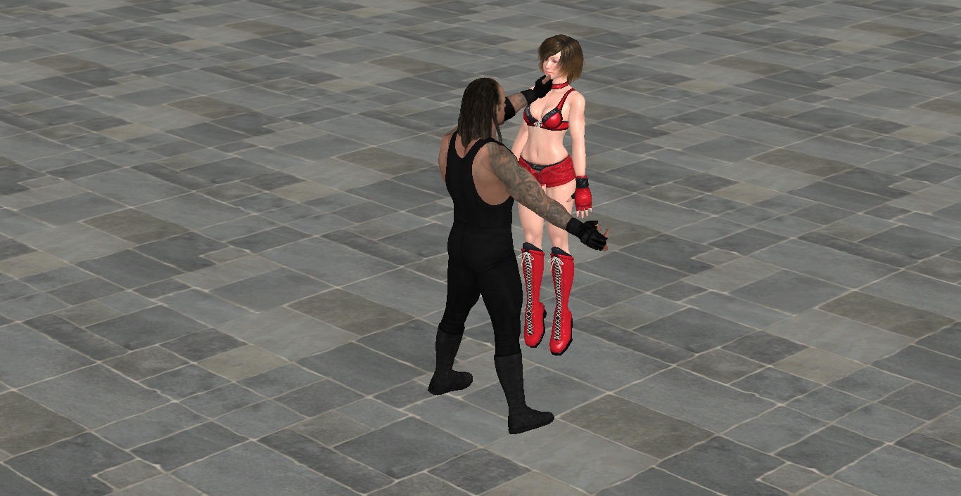 What, hey this is too cruel, Undertaker is holding Reiko in the air by her pretty breasts