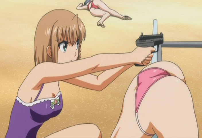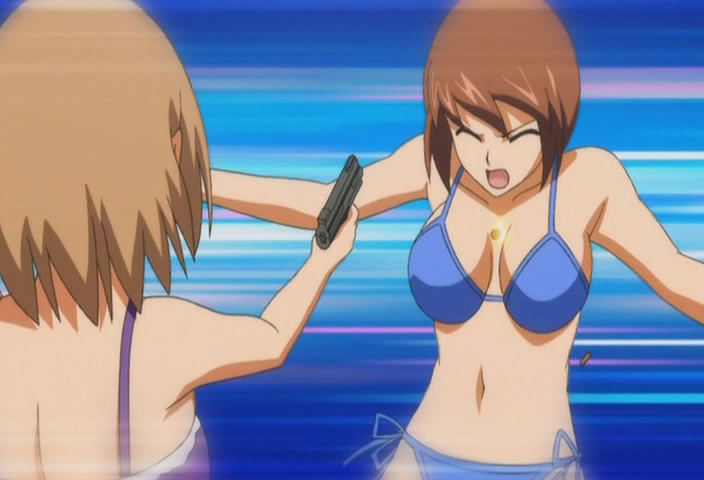 That's why I loathe the standard shoot and kill anime so much. I wish someone would adopt my idea, that of a gel-blob shooting gun that shoots electrified gel blobs which taser the opponents. The gel has enough momentum to knock someone off her feet and make her sore, but doesn't cause serious permanent injuries and instead uses the electrical charge to make the opponent writhe sexily before collapsing on the floor, incapacitated due to electrical disruption of the body's signals. A very sexy yet humane weapon. Even being shot in the crotch won't kill, but it will be very fun and sexy to watch.