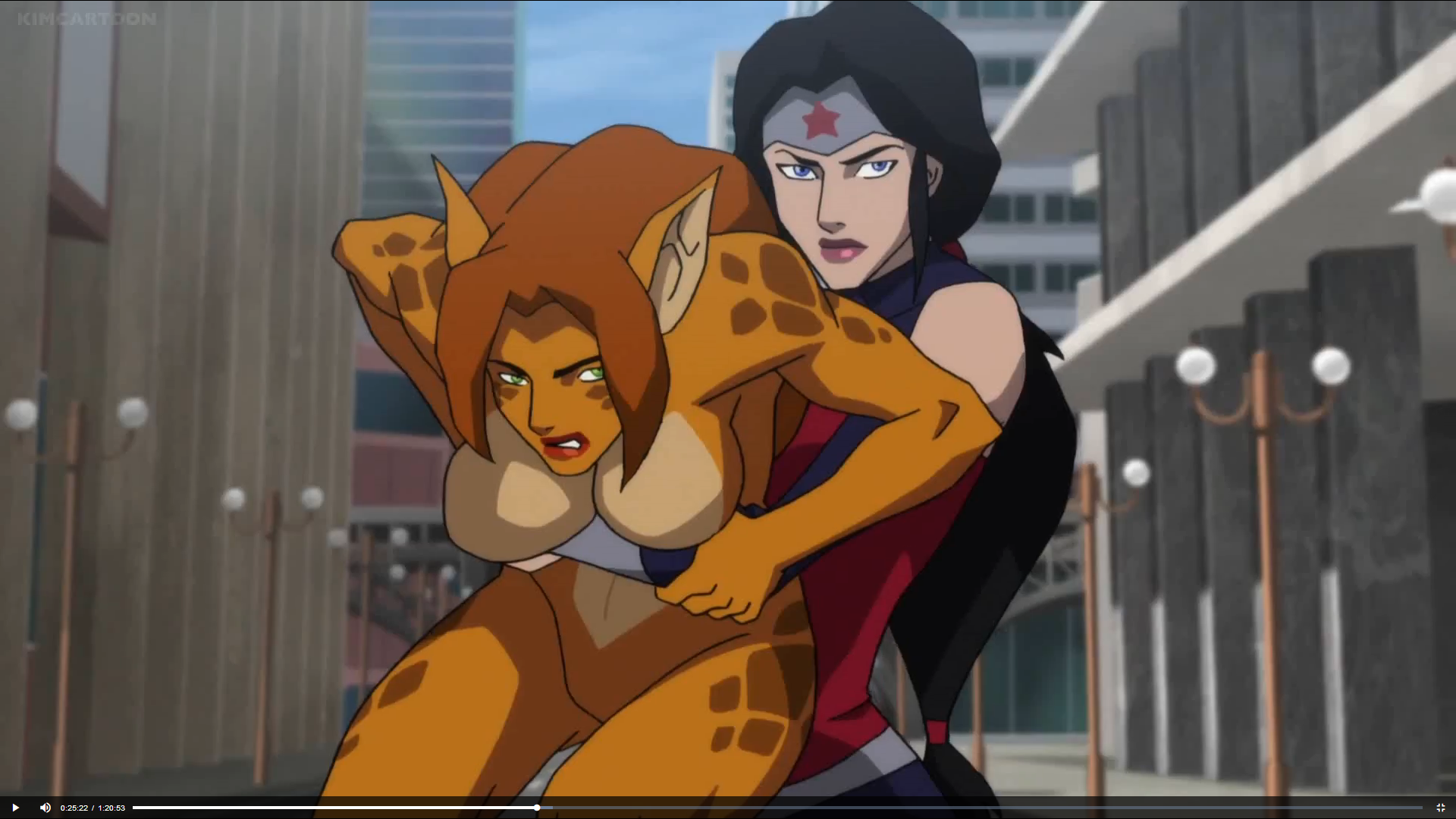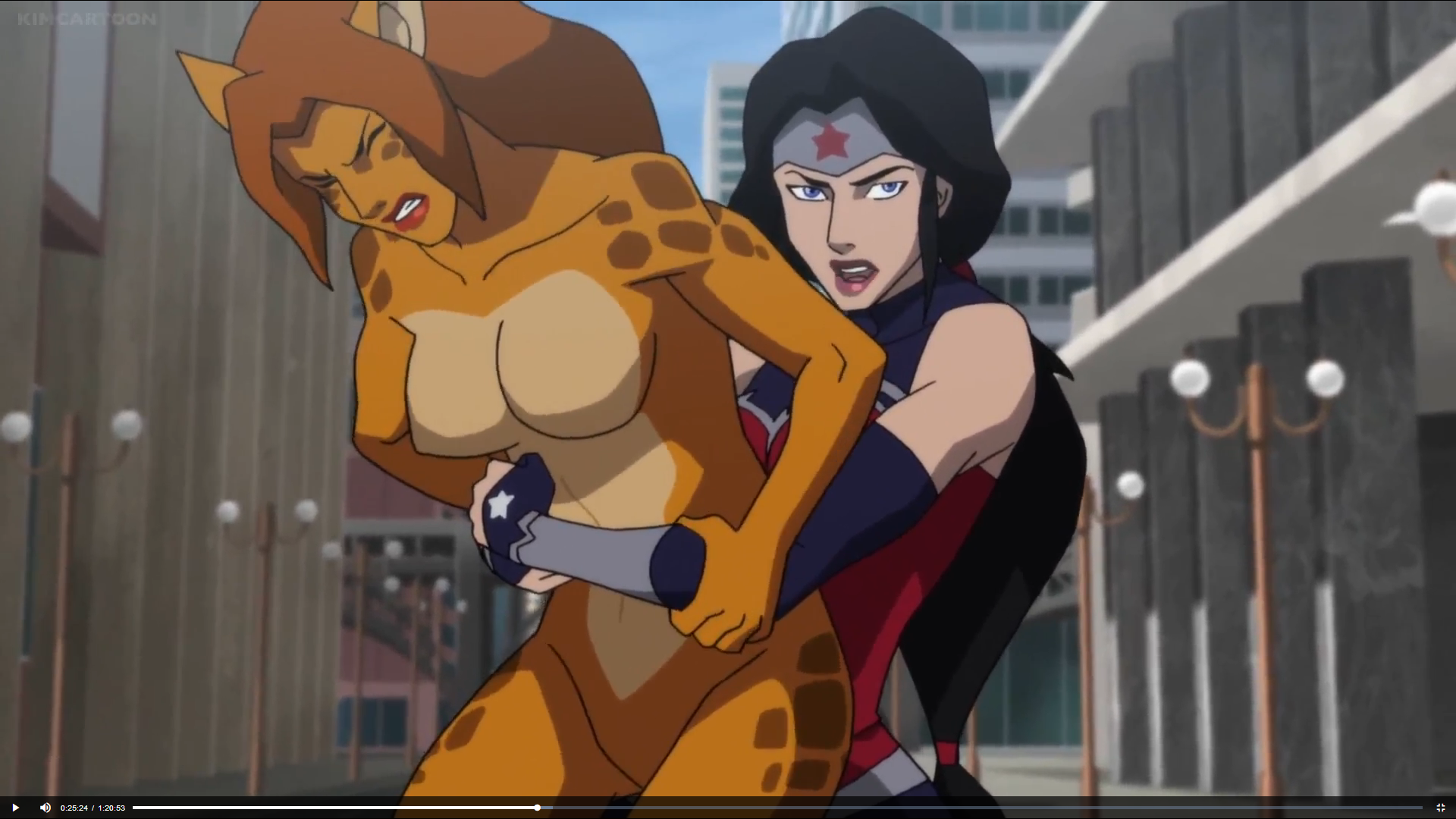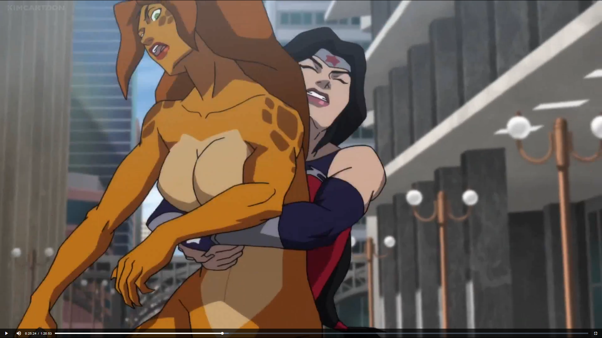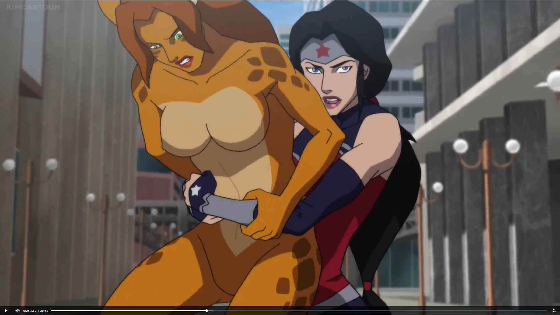 Probably not an intentional hommage, but Wonder Woman totally grabbed and pile-drived Cheetah in a way that was totally Aika vs Delmo style in Death of Superman. :) Of course, pantyshots lacking, since Cheetah is always naked... :P