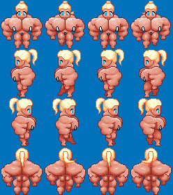 Been twiddling with it, and seems it would easier to use than Gamemaker, mainly due to fact that it has built-in combat system and graphically the scale is kinda small. Problem is, I haven't been able to track down any adult sprites for it, so thought I'd ask here if anyone happens to have any or would have an idea where to look? Not that they would that hard to create, but it would safe some time. Speaking of creating sprites for it, here's a super beefy amazon chick I made: