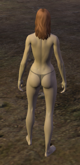 Here is some screenshots of the Cimmerian Female Player Unclothed Model in game. As you can see they are naturally topless, when they game was created in the early Alpha and Beta stages the female was fully nude to begin with. Funcom had to change this to avoid an AO rating so they changed the vagina model to a barbie doll physic thong shade, in later betas through launch. I tried to get as many angles as possible to view the model.