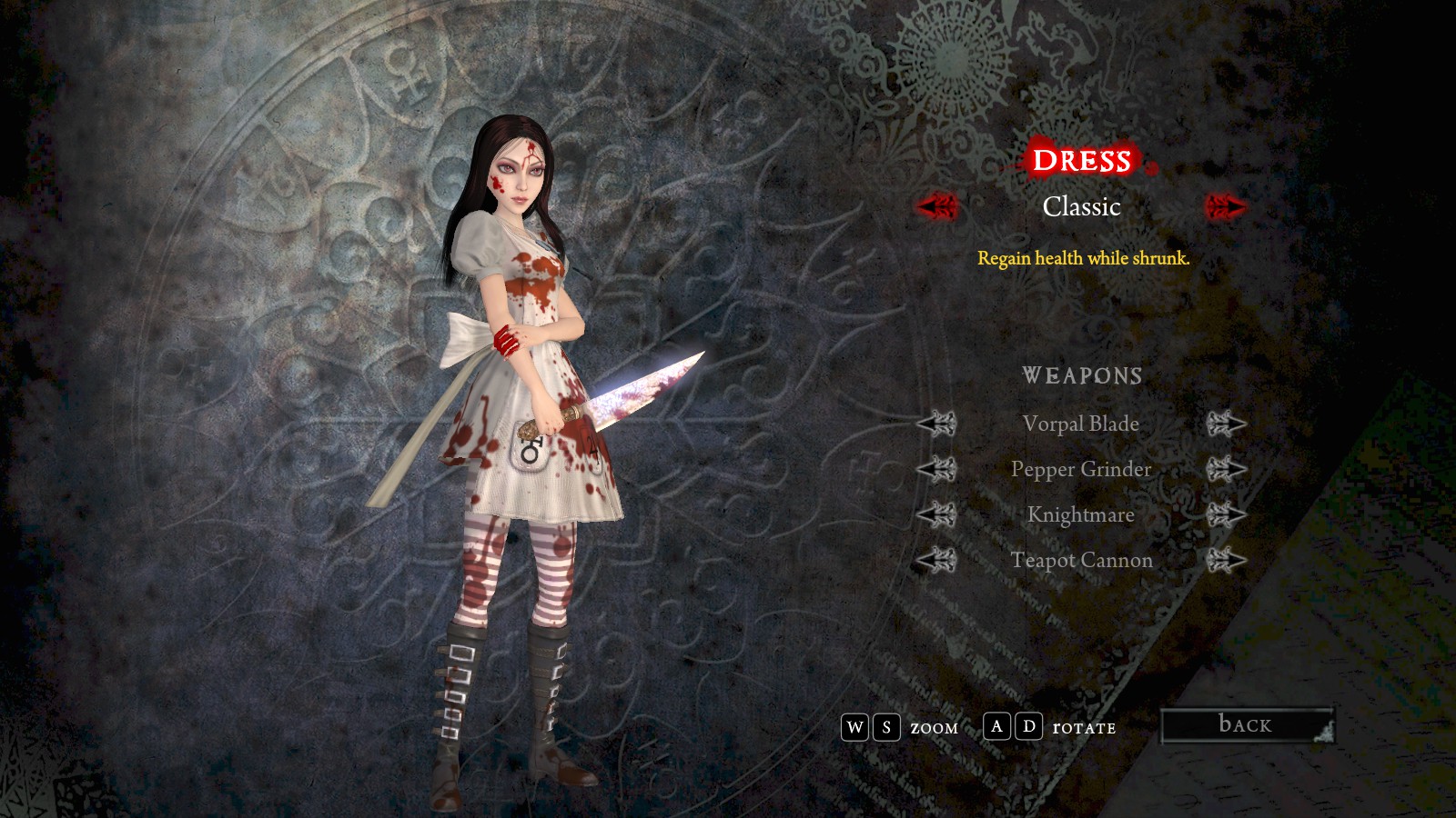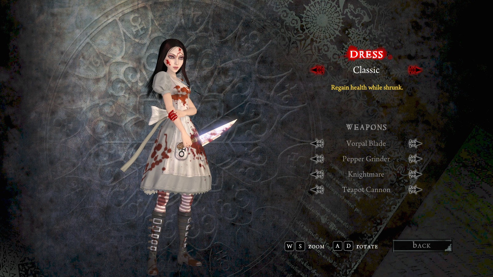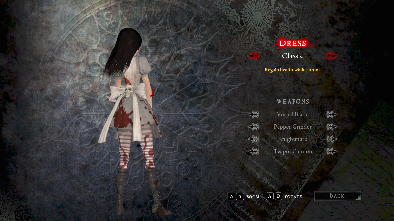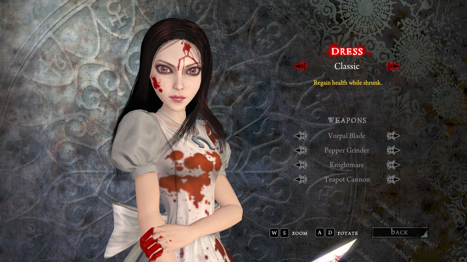 It does remind me of a series of high detailed skins for all Alice's dresses and weapons. Maybe I should lookup where I found these mods..