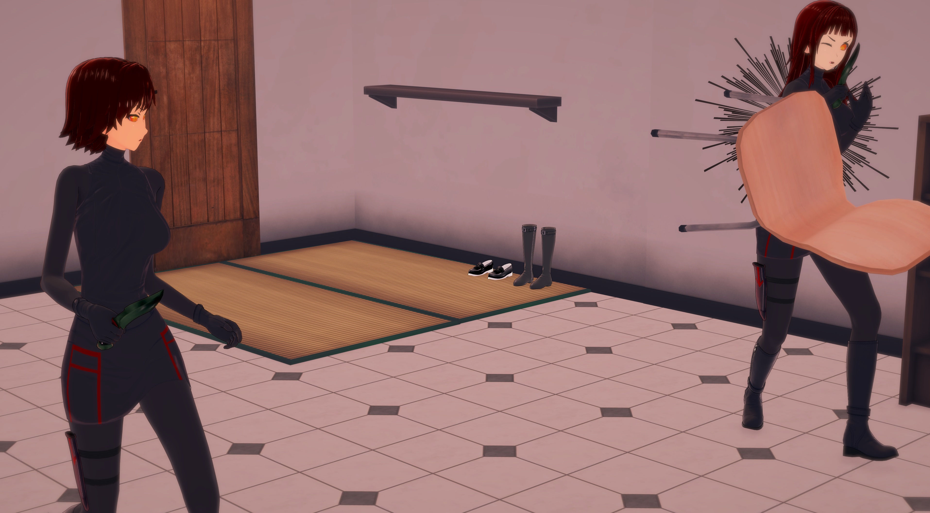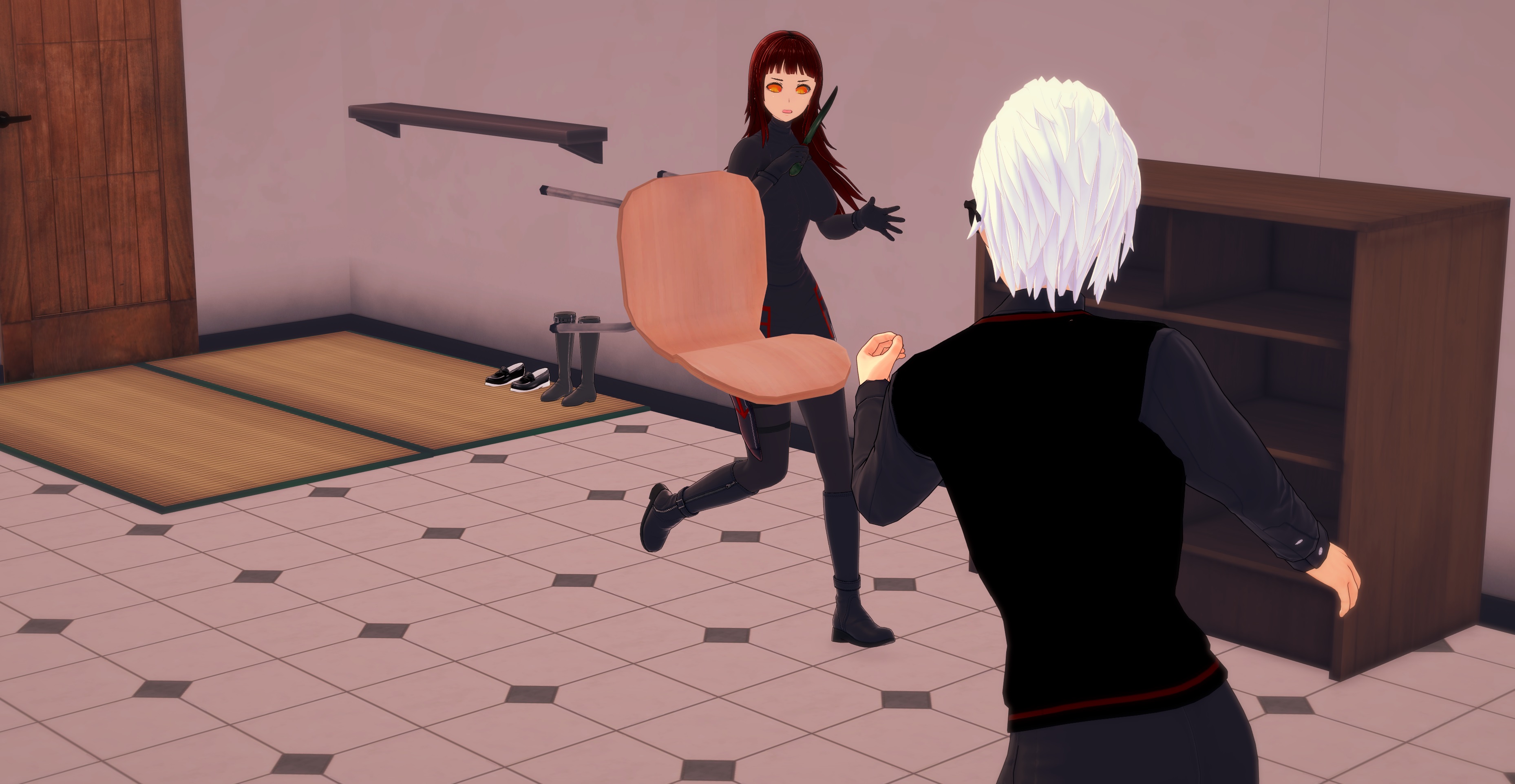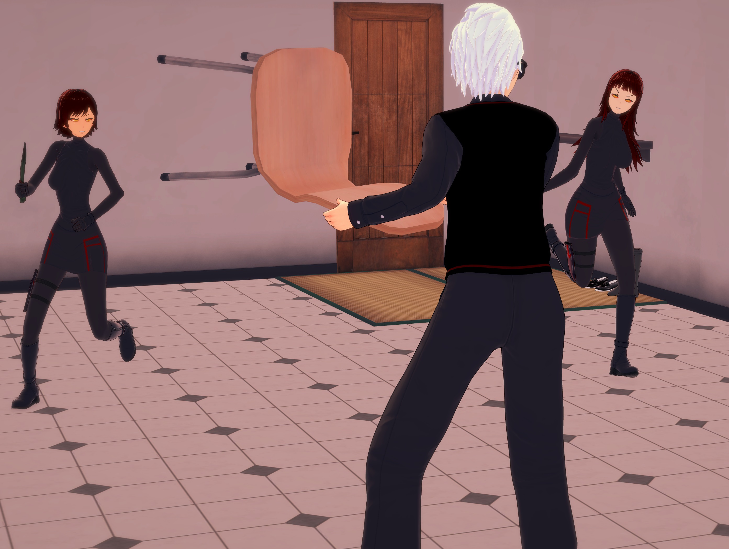 He flung the chair at Shirua putting his full weight into it, catching her off guard.