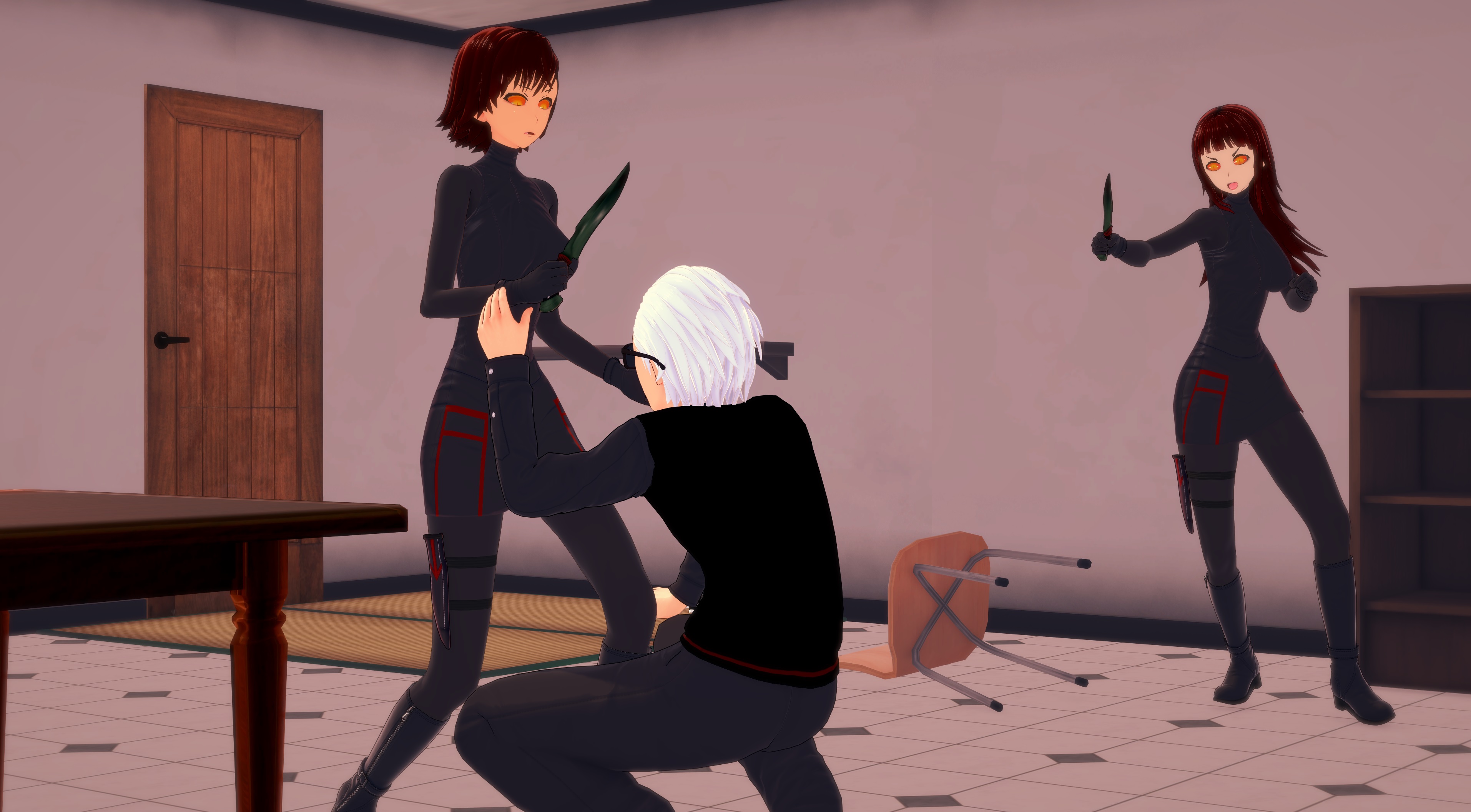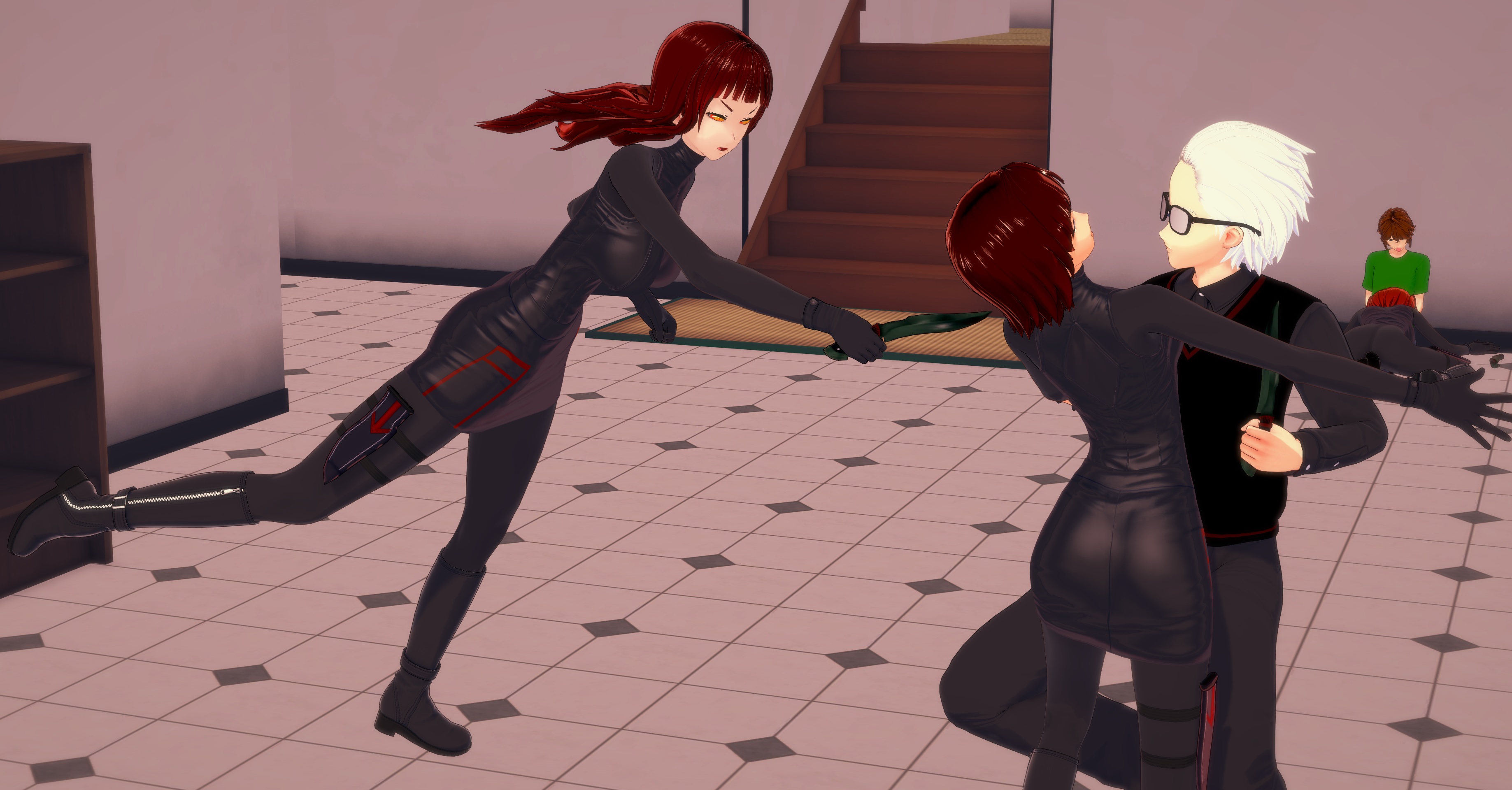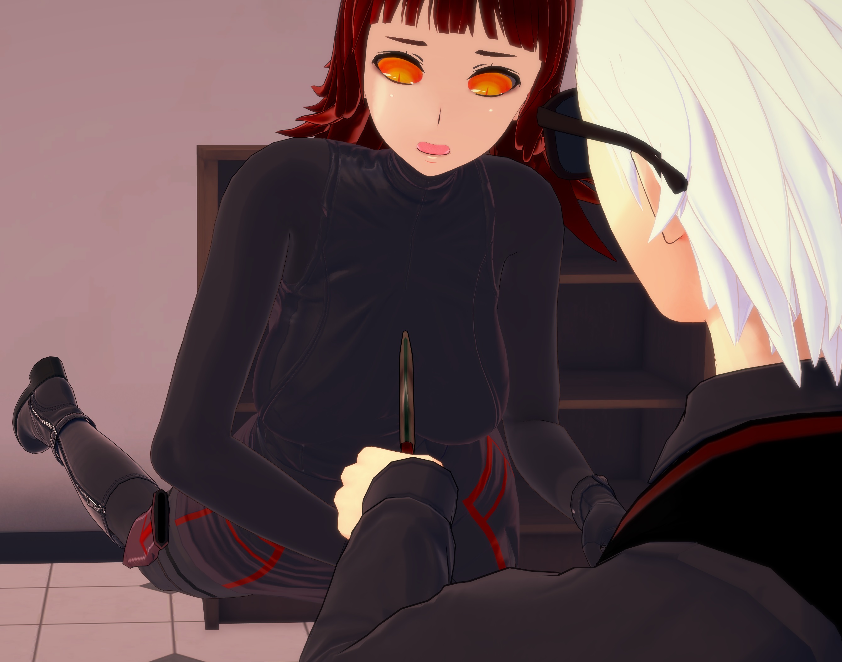 I was not about to take full responsibility yet. "Yeah, I'm really sorry about that Sable... I should have said something to you. The thing is we were being chased by two others wearing the same outfit as you are now..."