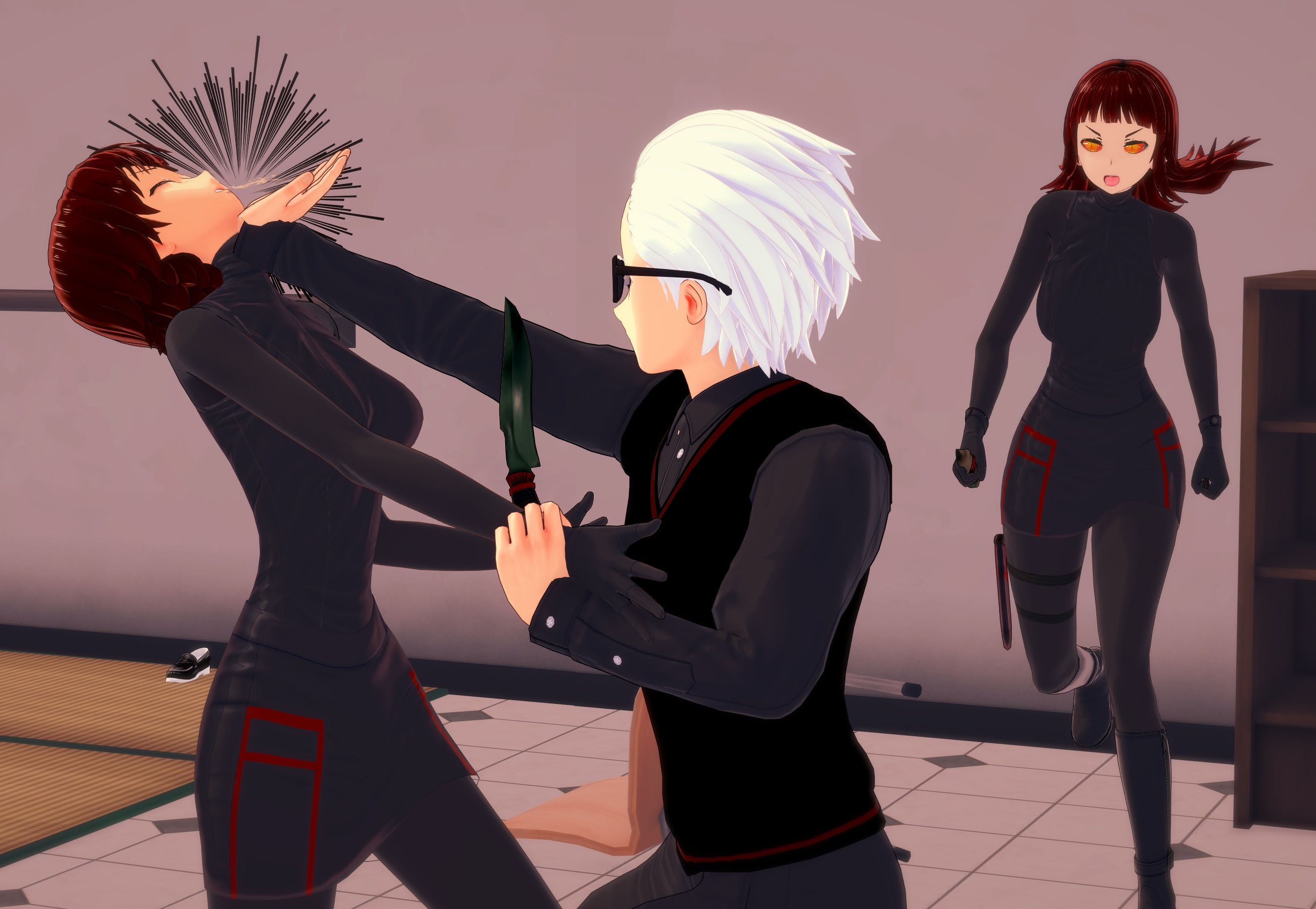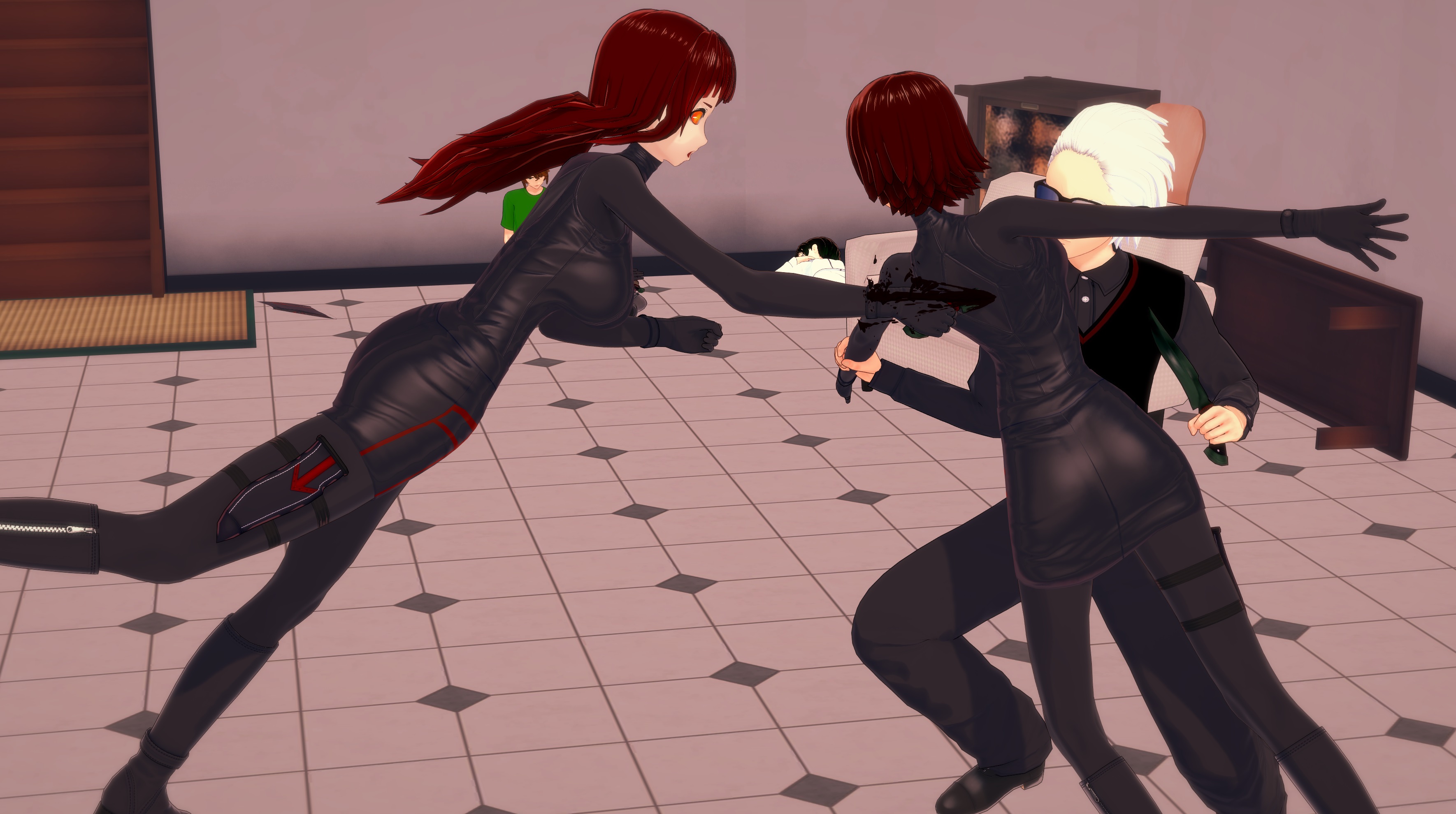 Mr. Markham simply pivoted and swung Rhisa's body in-between them the moment Shirua had committed her self to her leaping charge.