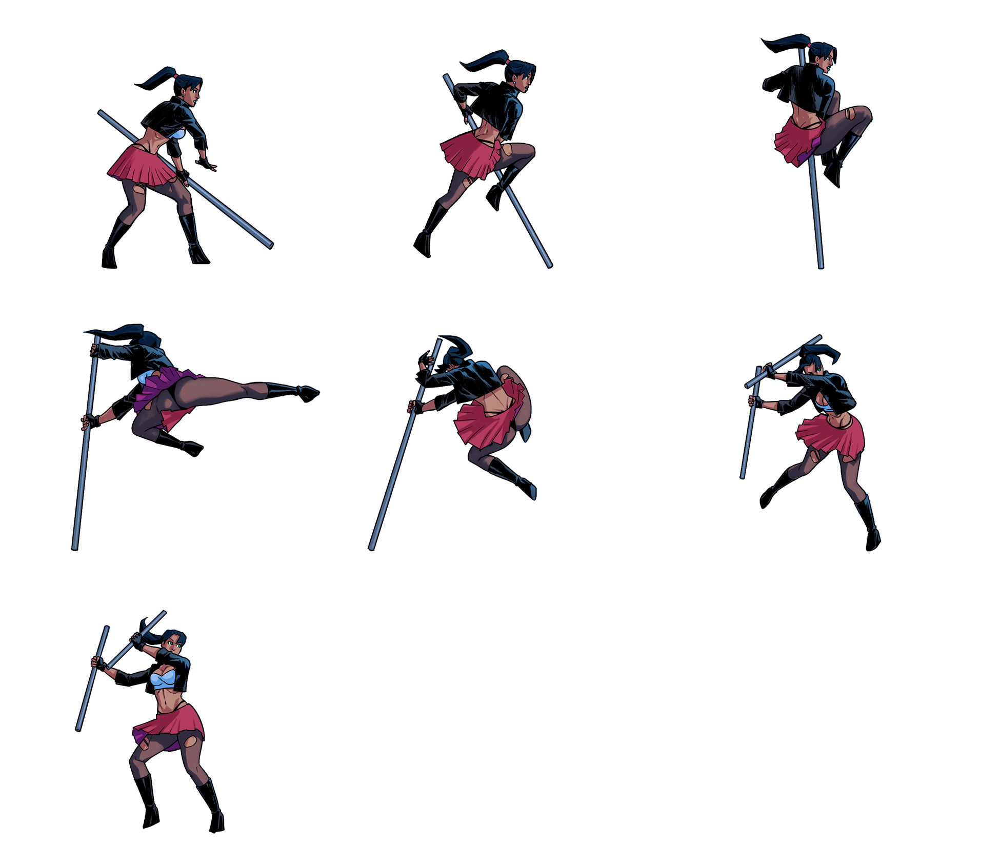 Jjang (짱) by Samsung is another beat 'em up title for Korean Windows PCs. Unfortunately, there aren't any screenshots of the zako, but it appears instead on the boxart below. A purple, haired girl with purple shorts and a purple sleeveless crop top with a "keyhole" in the middle exposing her cleavage. Not much known about her attacks and such sadly. But hey, she's all purple!!