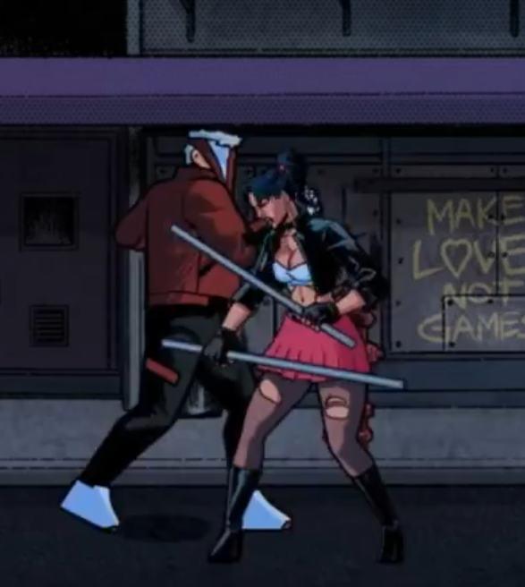A Night Where Good Things Are Bound to Happen (어쩐지 좋은 일이 생길 것 같은 저녁), just another Korean beat 'em up for the MS DOS. Surprisingly this game isn't obscure anymore as it's available for download in Abandonia, and there's a lot of footages on YT. There are two zakos in the game: a female Korean mafia member named Hyung Chae, as well as a bunch of rabid schoolgirls clad in cute sailor uniforms. The schoolgirls comes in two variants: blonde short-haired tomboys and black ponytailed brats. One man vs. an army of schoolgirls, what could possibly go wrong?