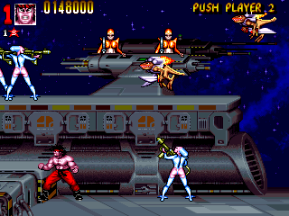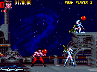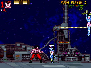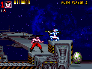 it happened in more arcade games then you think. you should check out the battletoads arcade game sometime. everyone's favorite amphibians went to a hilariously cartoonish level of violence that include grabbing giant rats by the balls and punching them in the dick, turning their feet into buzzsaws and decapitating people, turning their hands into drills and shoving them into enemies skulls, etc.
