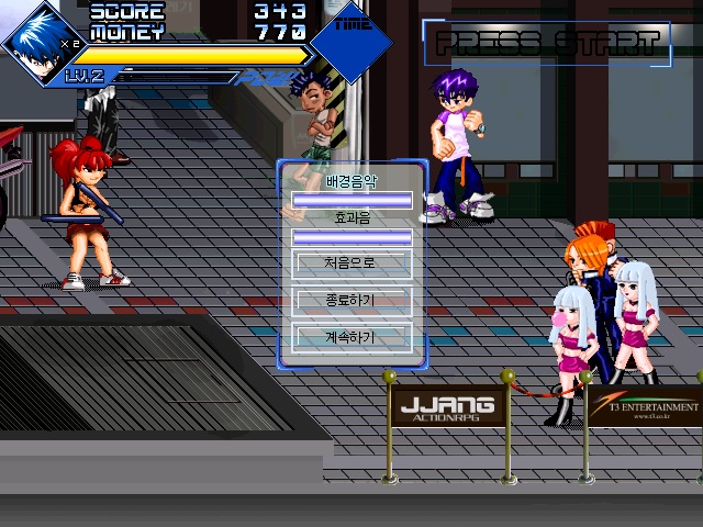 Jjang has more than one female enemy: girl with baton and woman dressed in rabbit costume. You also fight a female boss near the end of the game. This game was so difficult to grab screenshots because anything that takes you out of the game crashes it. I had to play the entire game just for one screenshot and then do it again for another.