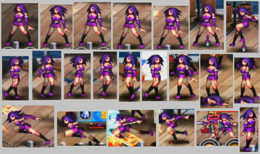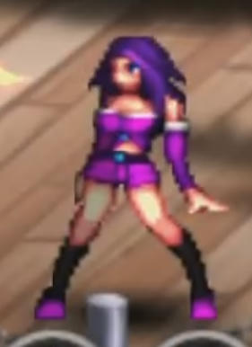 This zako is found in the game Final Fight 2, for the Android mobile platform. Graphics are not great, but she still nails most of my criteria. With her purple hair, boots, and sleeve things, she has an awesome punk style while still remaining feminine. She shows off her rocking body with tiny shorts and a nice top. She's also the first enemy in the game, showing up in large numbers and dropping like flies against the far superior heroes:
