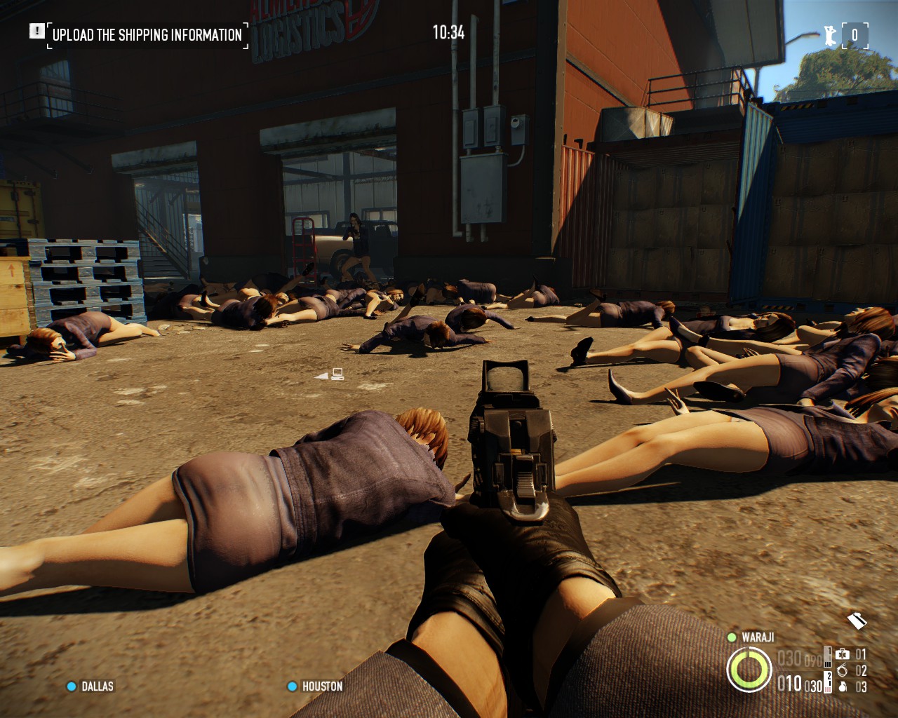 Sure, that's Payday 2, and someone's modded it to replace the millions of cops that game throws at you to be the model of a female civilian. He hasn't uploaded it anywhere yet, because the game keeps getting updated quickly right now which breaks his mod.