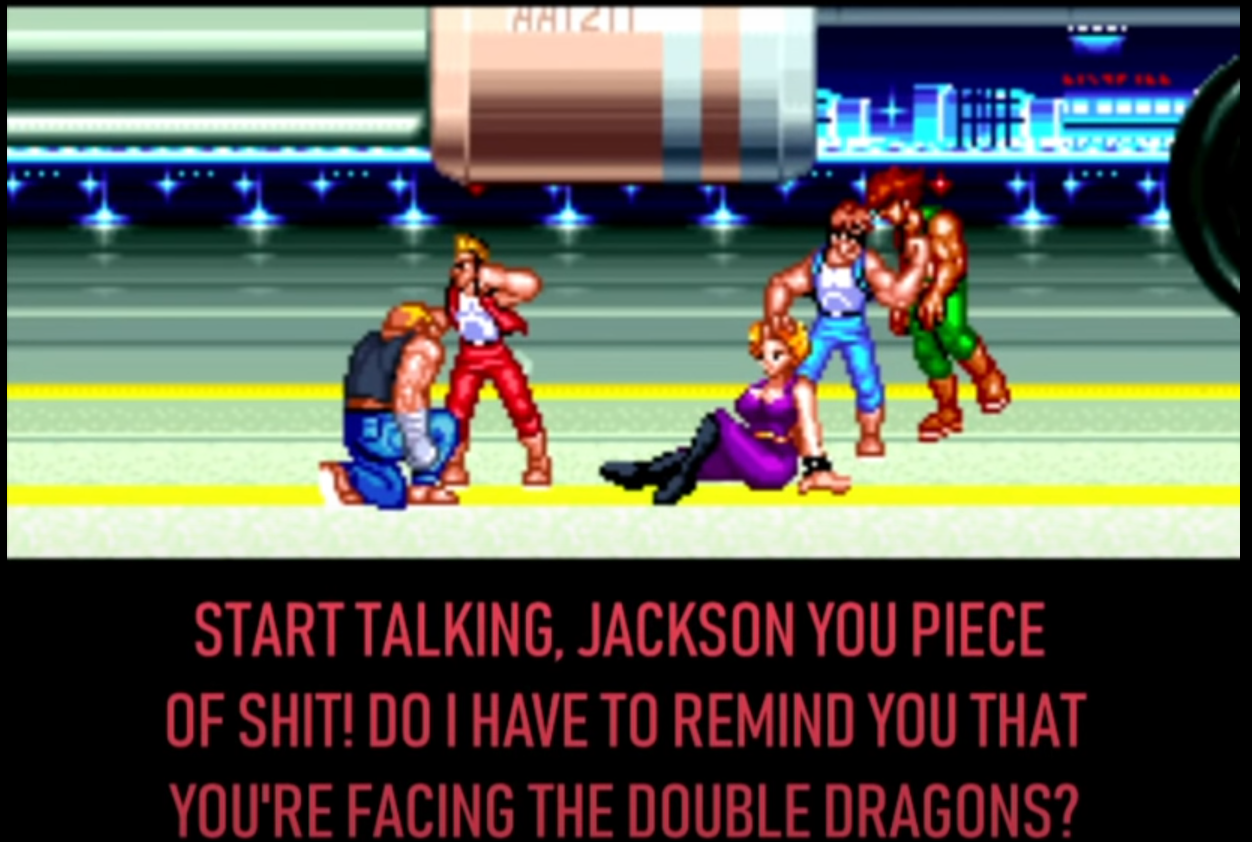 Did the original guy retire, and now his wife decided to step in his place? Apparently she is more annoying than the original guy, so he must be enjoying retirement. One big gripe I have with the game is that the infinite combo is gone. You used to be able to slowly punch the enemy because you recover before the enemy does, but now the enemy drops after a few weak hits. The other thing I don't like is the lack of continues. This isn't like the original games where you have credits to continue on the spot. You only have a few lives to complete the stage. If you lose all your lives, you must replay the stage.More art:
