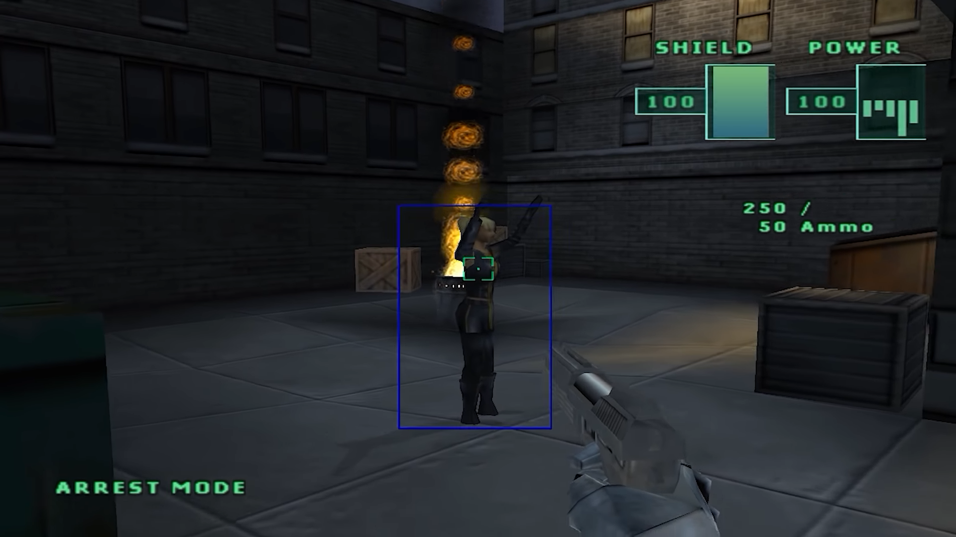 Zakos from the Robocop 2003 game. Unlike most shooters, here you can actually use non-lethal weapons and enemies can surrender to be arrested. There are also super-fast and deadly cartwheeling cyborg ladies, but they have a 1-shot-kill weapon and I have yet to see gameplay where anyone goes close to them.