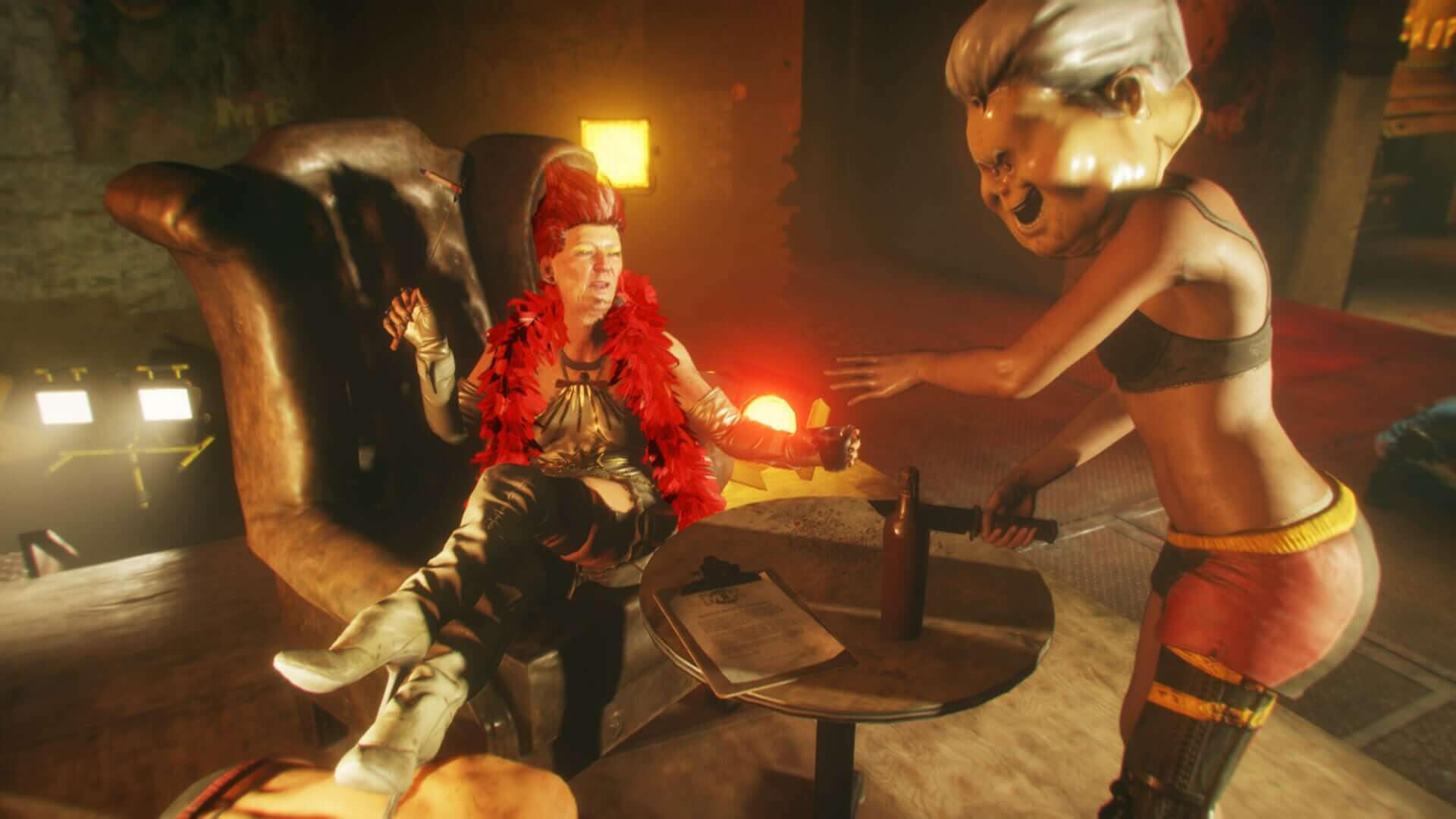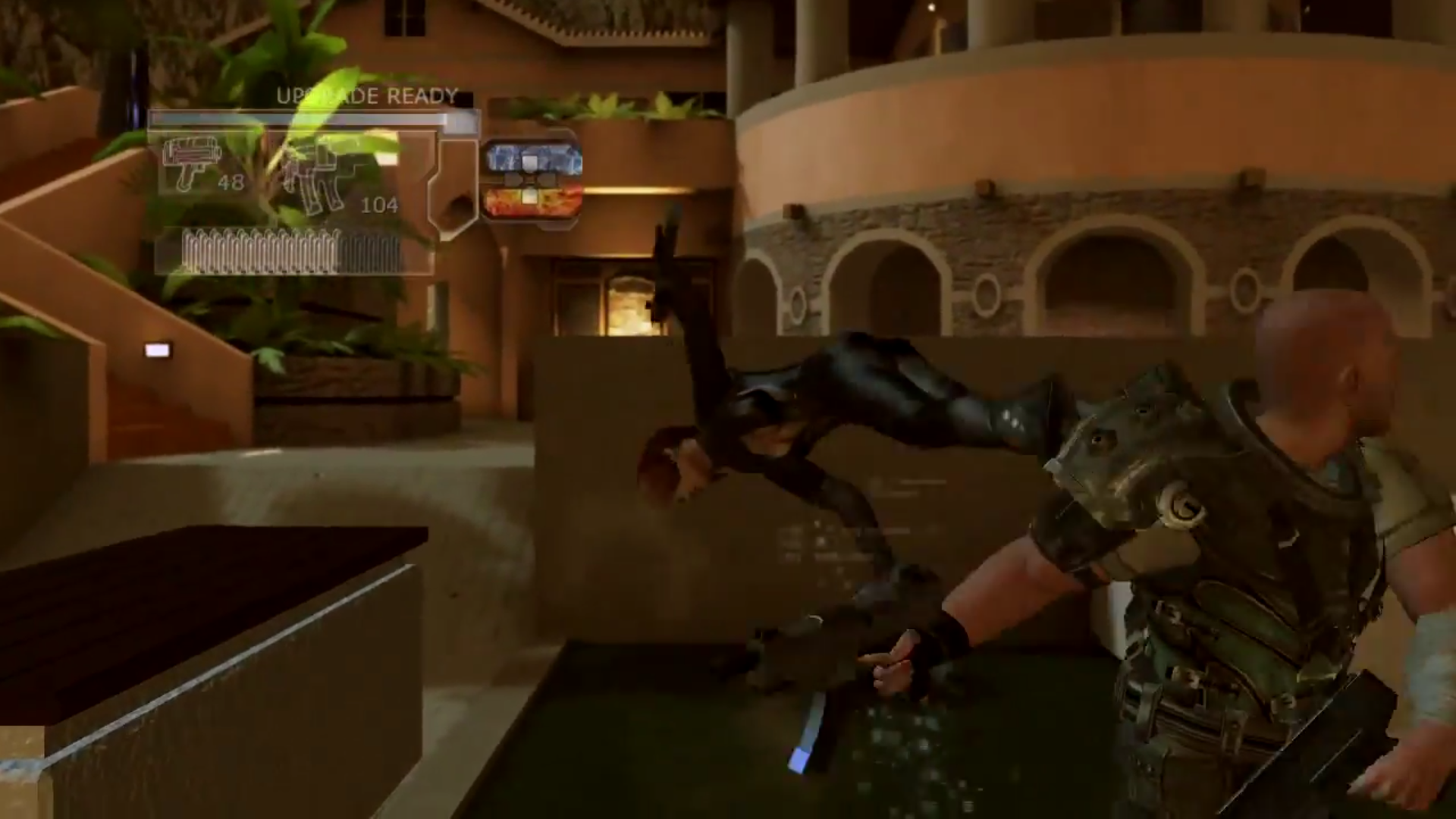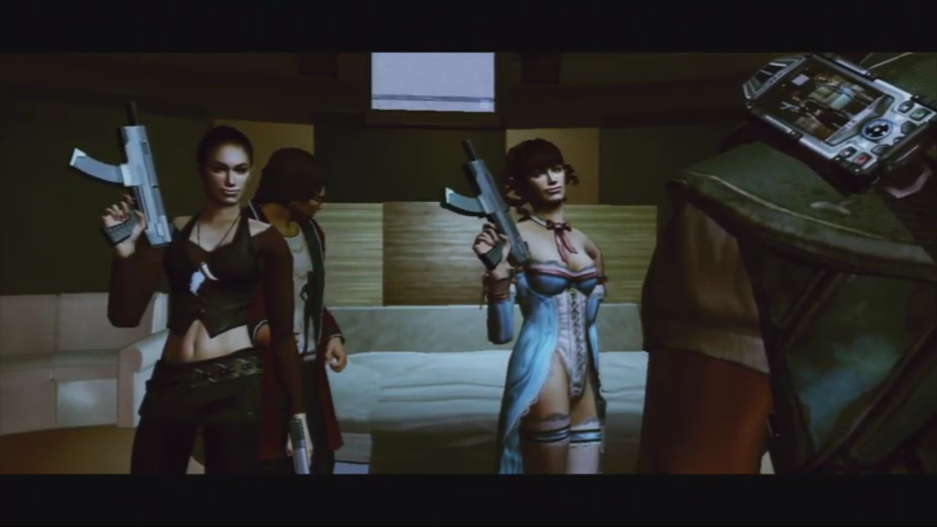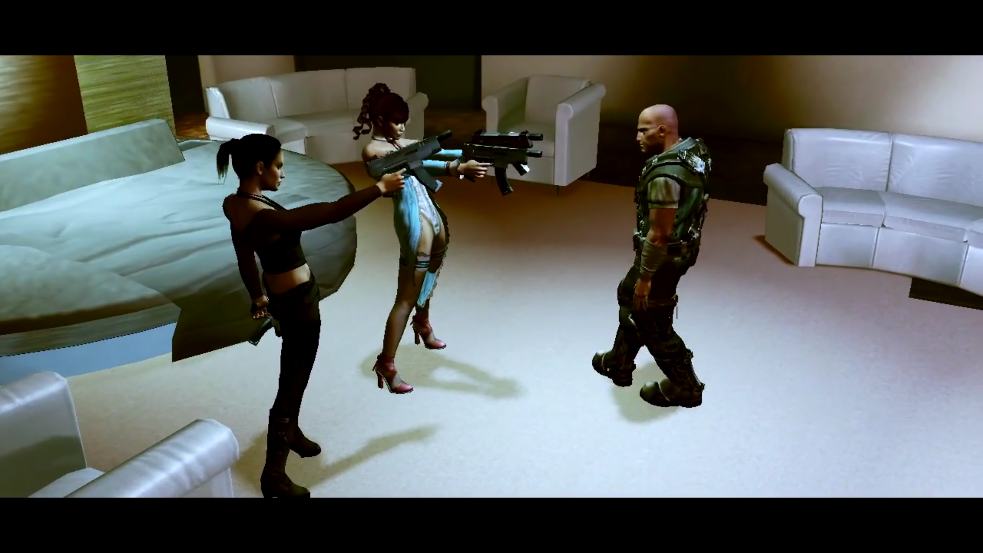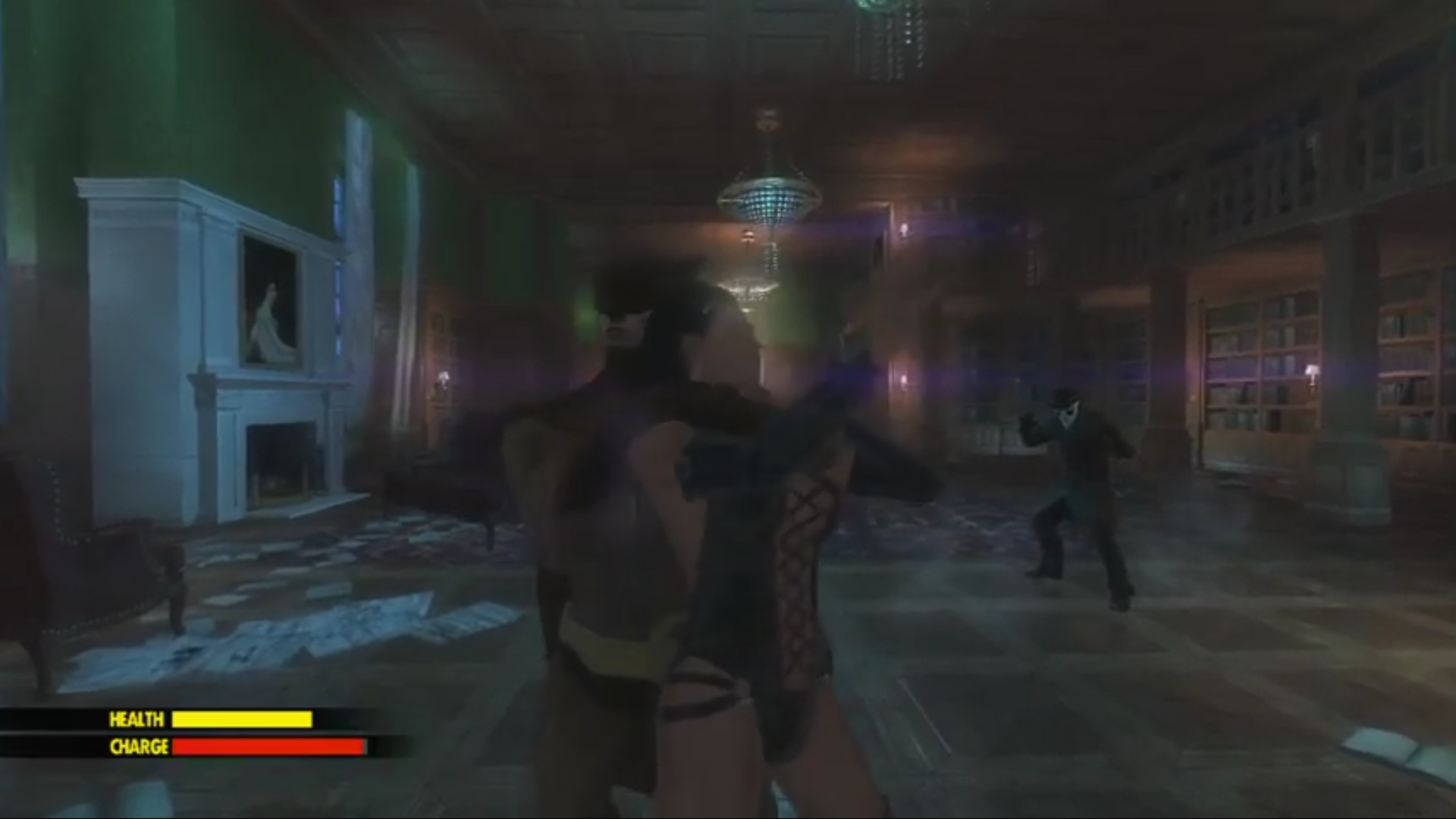 Here's an oldie, back on the Xbox 360. The game is called Watchmen: The End Is Nigh it's a basic button mashing melee fighting game. In this mission/episode you have to fight your way through a BDSM brothel and all the enemies are the dominatrixs and submissives.