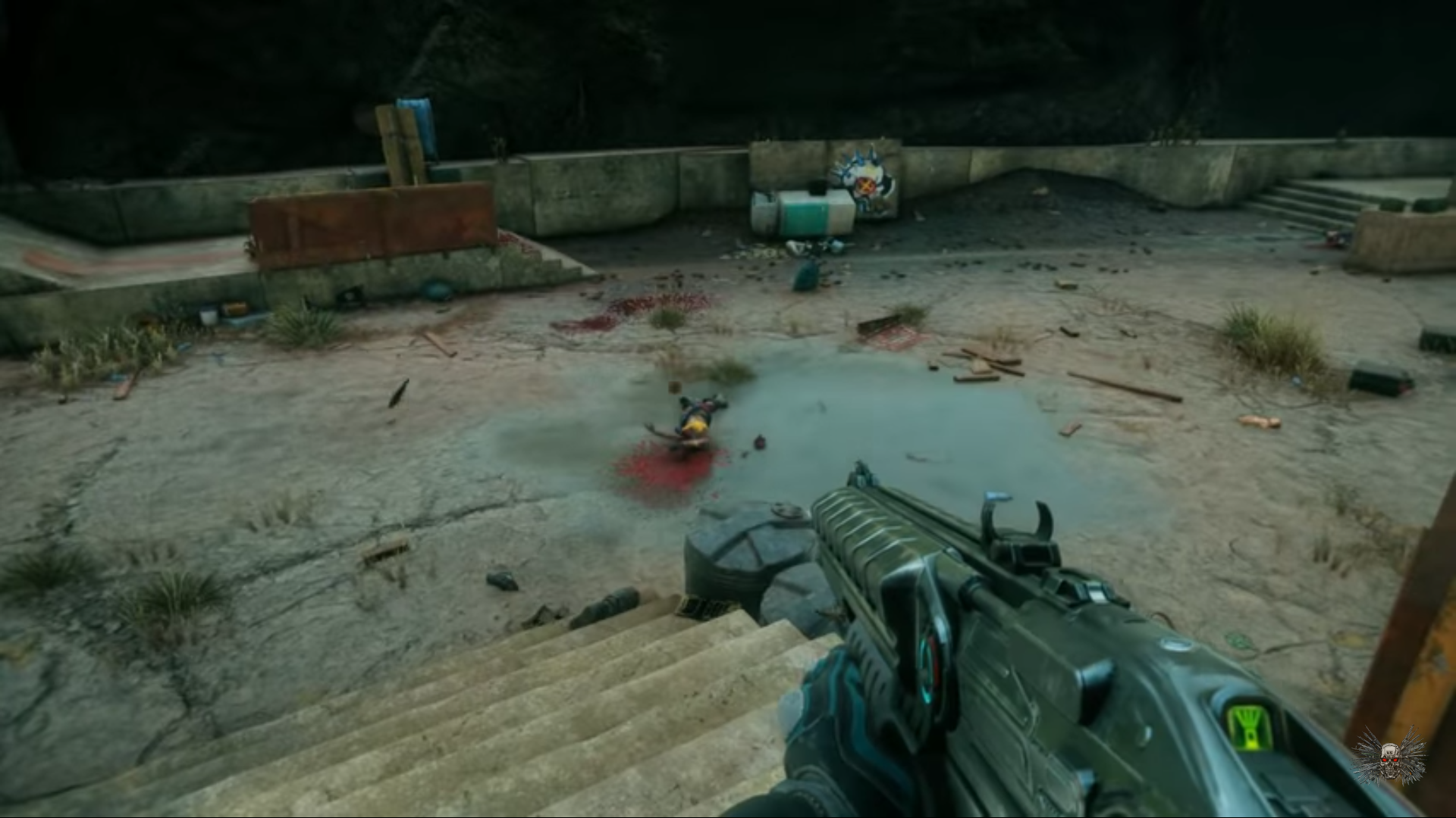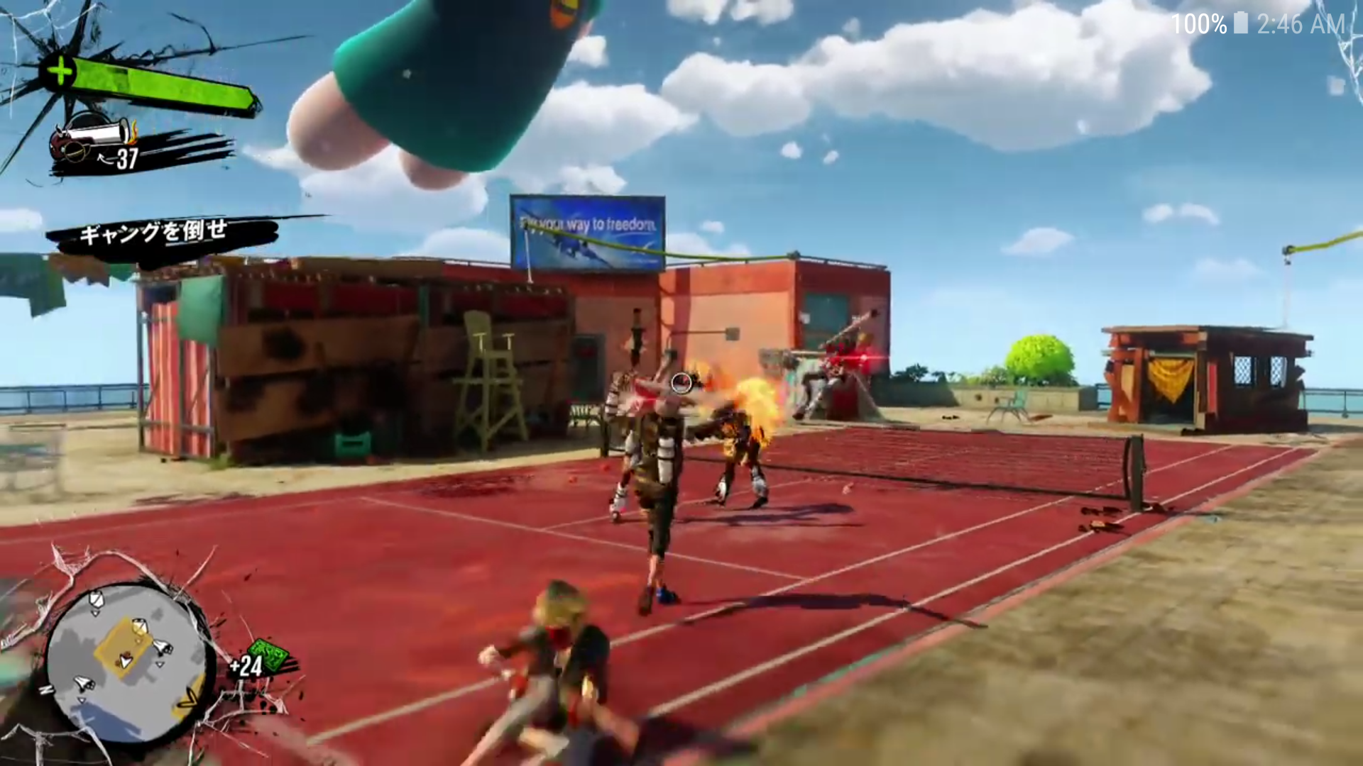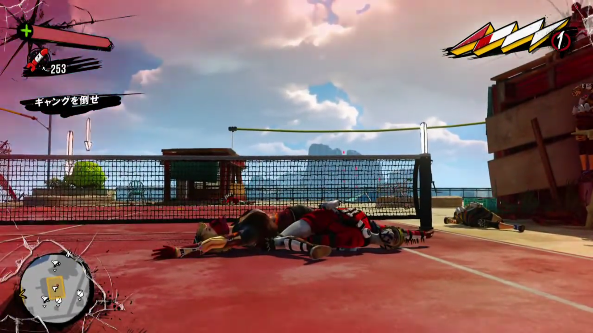 Here's an Xbox One launch title, it's called Sunset Overdrive. It's a third person melee skating combat game. You fight people that have turned into funny monsters after drinking a tainted engery drink(it's supposed to be a over the top humorous game) In this mission you're on a rooftop fighting a group of human women.