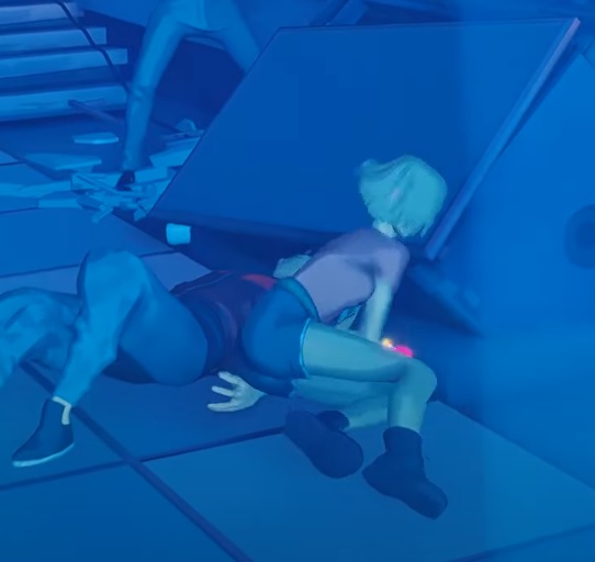 Second: Time stamped at 1:10. Modded to play as John Wick. In this one, the destroyed zako ends up with her face on top of a male zako's groin, and she gets moved around a bit as the action continues.