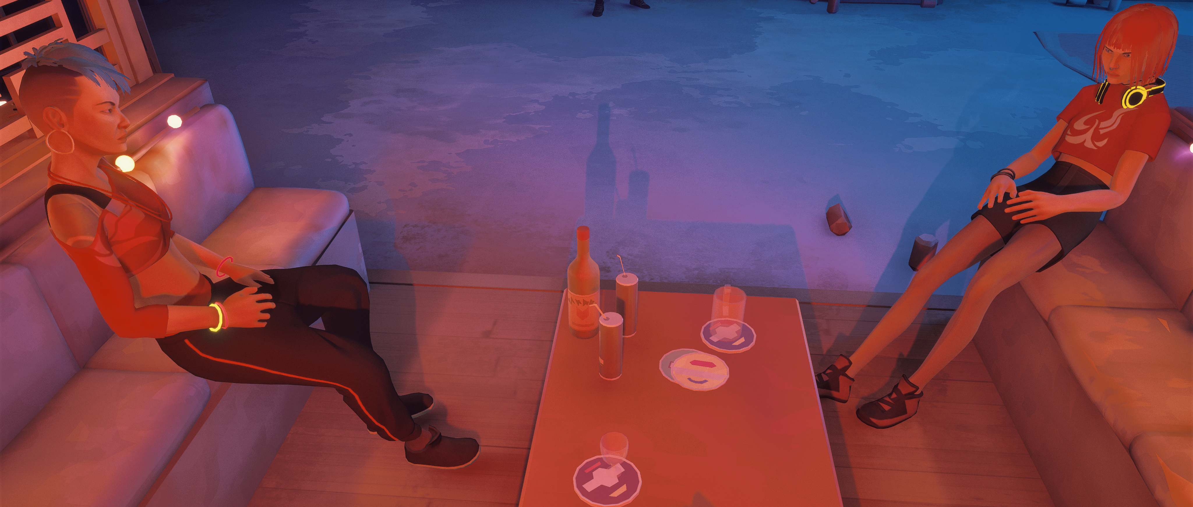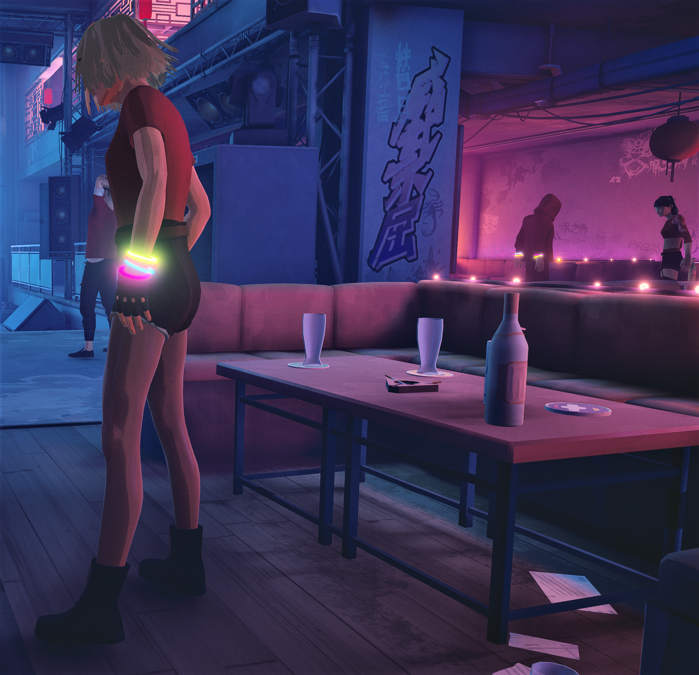 Club-goer 5: "Ahhh. This is relaxing, and she actually makes a good footrest. Very cushiony. Will she be here tomorrow as well?"