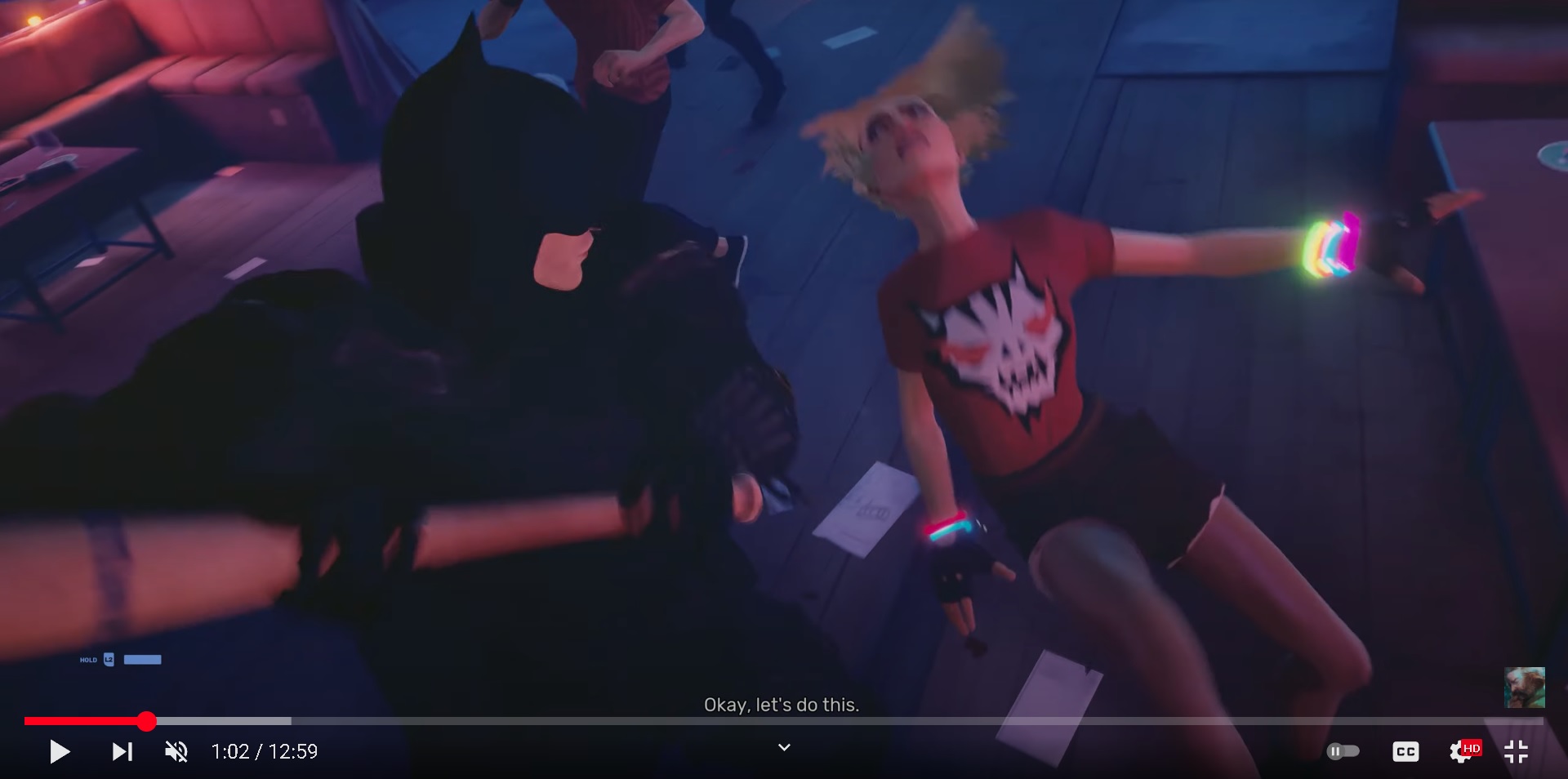 The first hit knocks her shades off. It's interesting to see her facial expression change from angry to scared as the hero performs a finishing takedown on her.