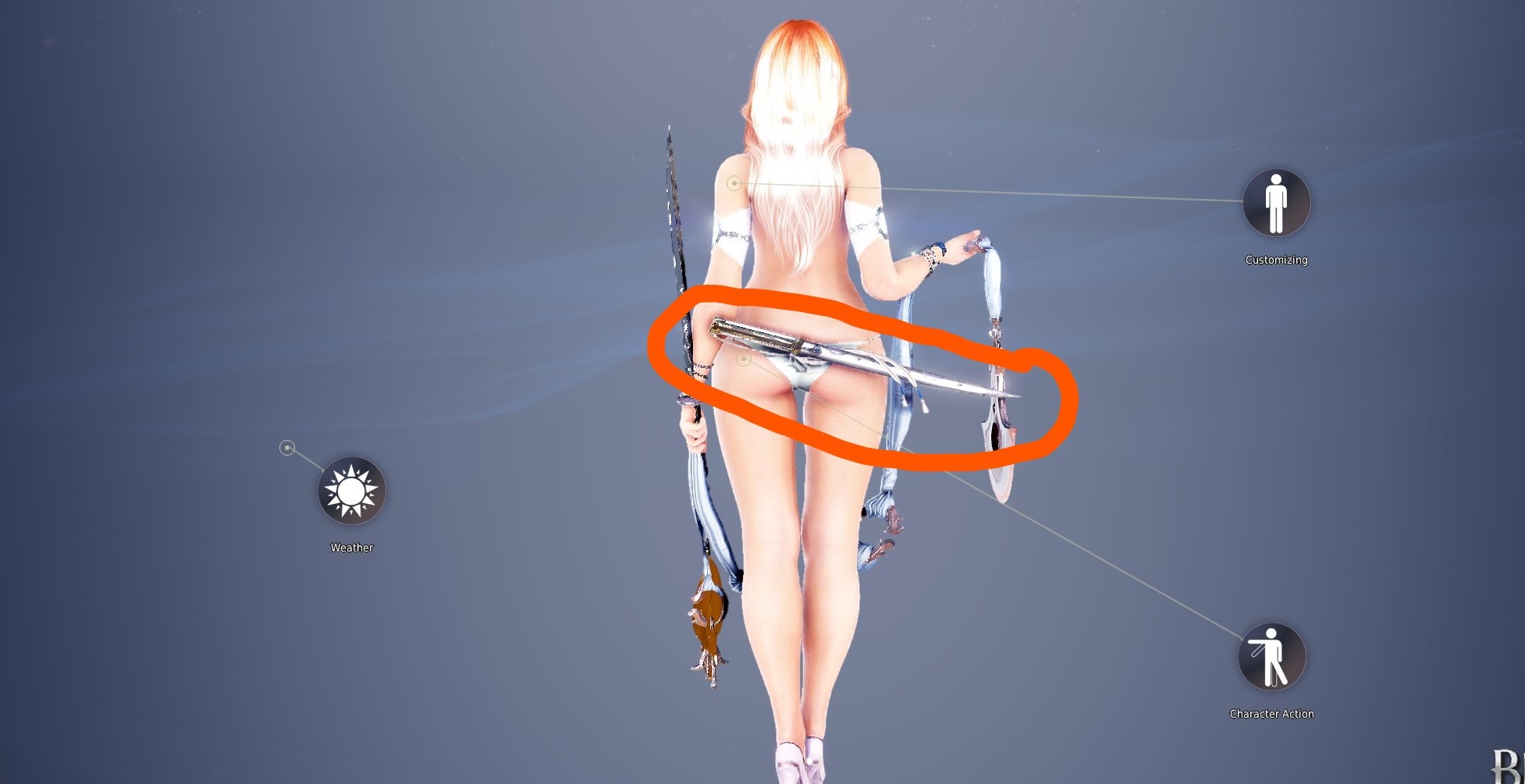 Hey Suzu, Is there a way to remove the Lahn's noble sword scabbard? I use the bodyslider and the scabbard seems to be attacked to the Lahn's butt. If I increase the butt of the Lahn the scabbard gets big also. It looks bad. Lahn seems to be the only character that has this issue.