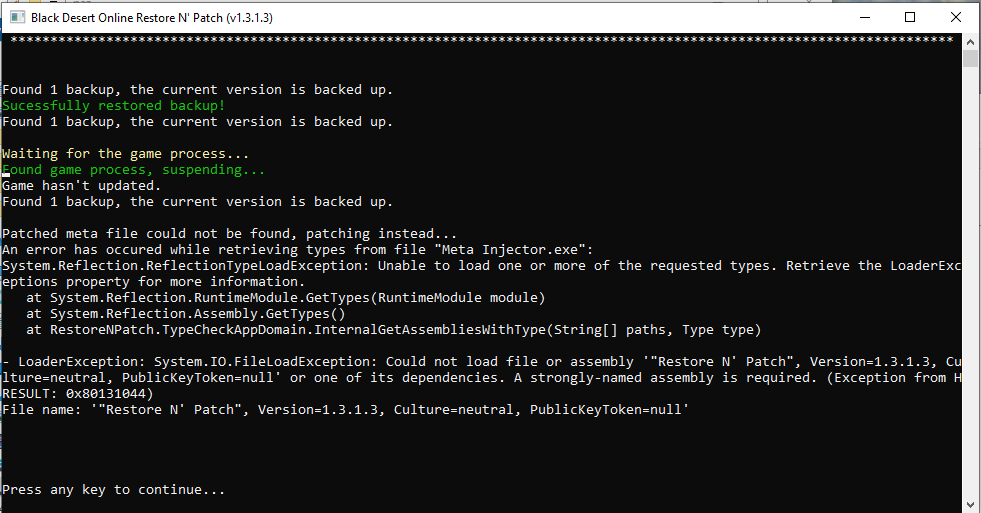 You can also just apply the mod with meta injector and start the game. Restore n patch is only a failsafe if the game has been updated their files so that you don't get the corrupt file error while its patching.