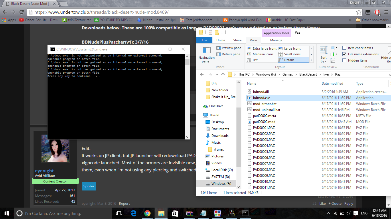 Thank you for the new mods. I had the old one before they patched it out and i quit playing BDO because of it. Now I'm playing again thanks to you for making the new resopressless mod. We all owe you for your work on this and it looks amazing in the game with my high end pc. I don't play mmos if they cant have a decent nude mod and if it wasnt for you undertow modders i wouldnt be in heaven seeing my avatar in the game. This game deserves a nude mod more than any other i've played. The graphics are near perfect and along with the weather and light cycles it's great how good my avatar looks with your mod. My main in game is ericahz and family name thelema. If you see me in there say hello. The screenshot is from the first mod in march.