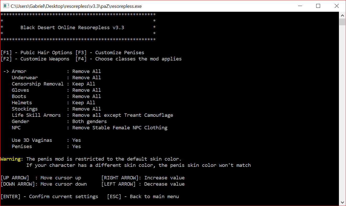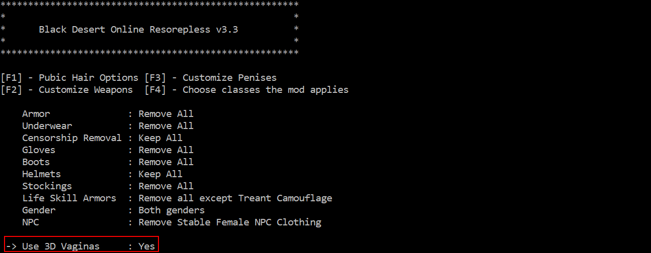- Press F3 in the Customization menu to change penis type for each class: