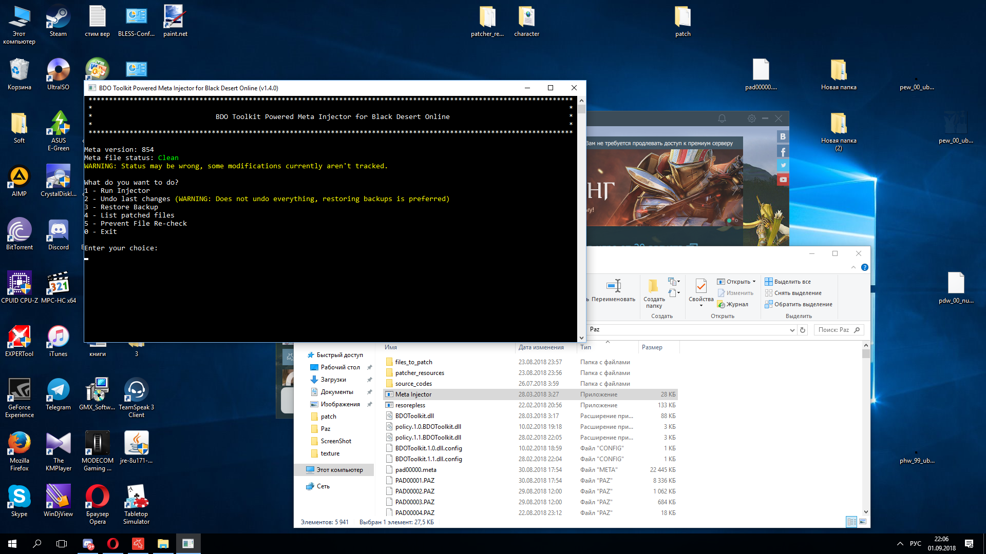 That's incorrect, Meta Injector works via BDO Toolkit both of which are entirely independent from resorepless. I have not experienced any issues patching without resorepless.
