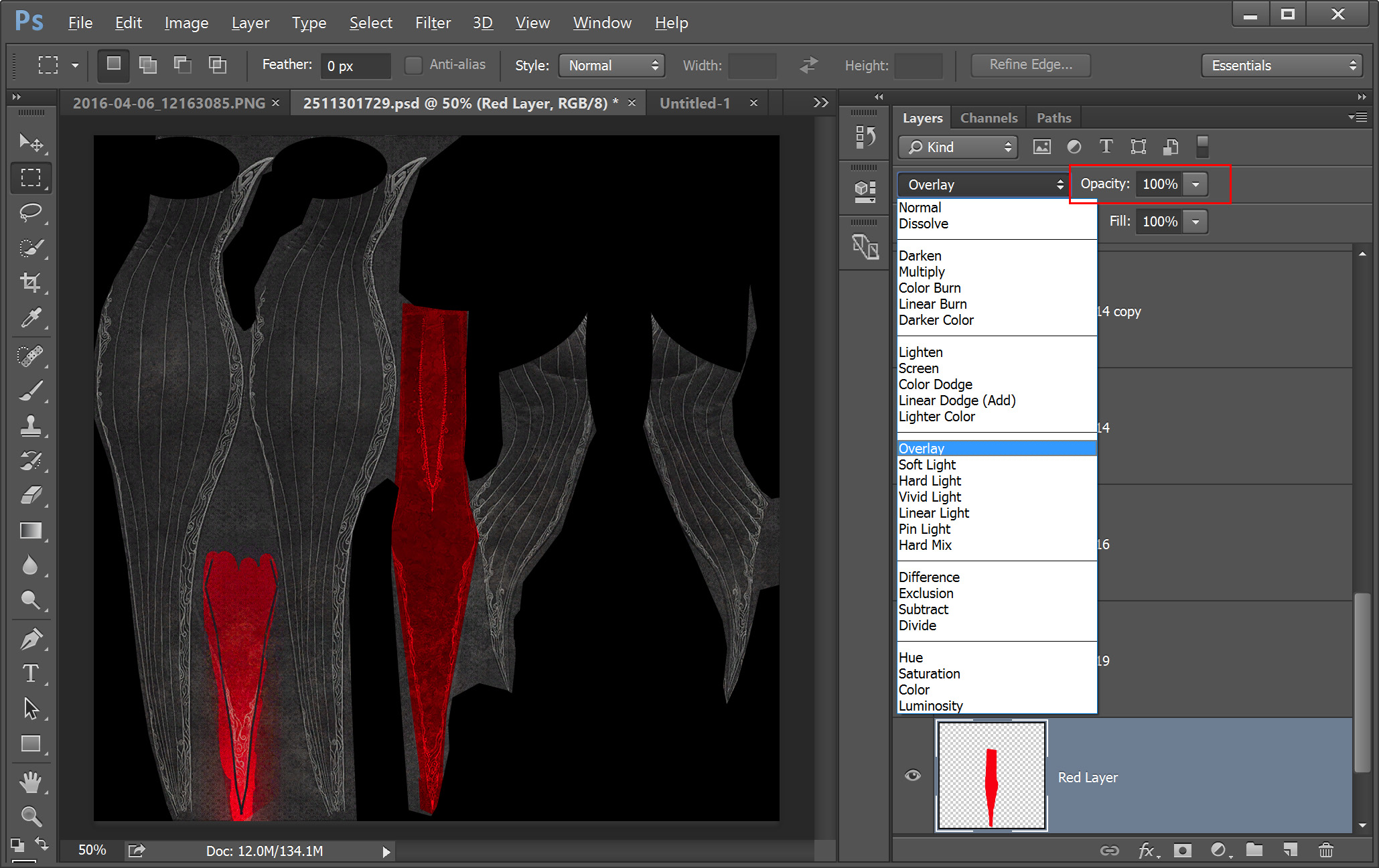 Or you can keep the opacity at 100% and change the Blending Mode to Overlay if you want:
