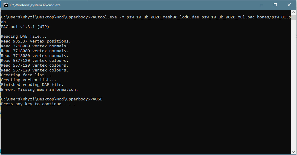 This should be the last thing I need help with from the mastermind herself \o/ but what does it mean by "Error: Missing Mesh Information"