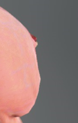 Any idea what causes this jagged distortion of the mesh around the nipple when you have certain breast slider shapes in game? How to fix?