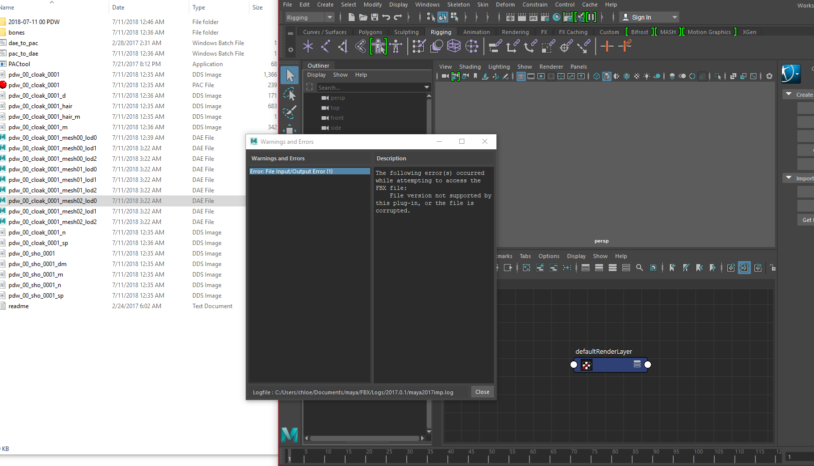 managed to convert with weights but i get this error when importing, i just changed the direction of the \ in the pac to dae for the bones