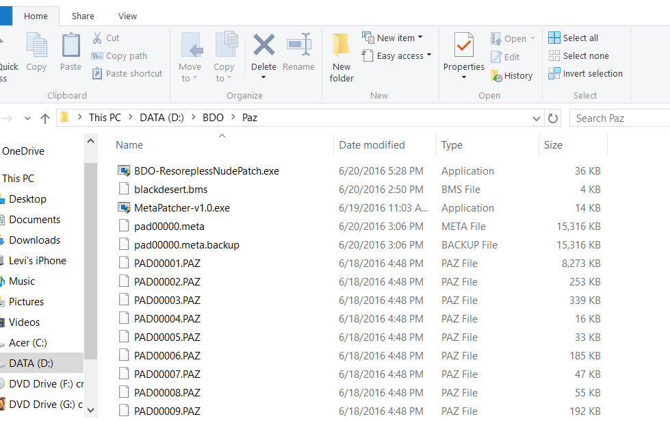 - Place the .pac file you just created into "Black Desert Online\Paz\files_to_patch\"