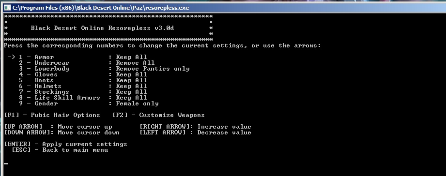 Not completely positive but did you "install" it again after putting changing those settings? I think you need to install after changing something.So im trying to only remove the underwear not go completely naked all the time, I have here the settings im using but when i get in game its completely naked every time, what am i doing wrong?
