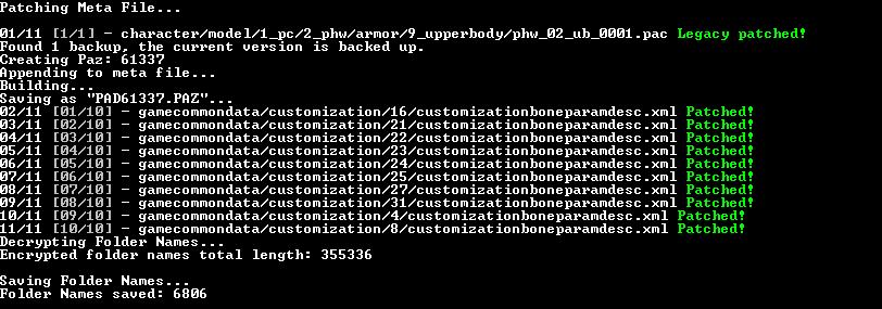 警告:每次運行resorepless.exe時,它都會替換文件夾“Black Desert Online \ character \ texture \”中的紋理,這是遊戲加載文件的位置。因此,確保在每次重新應用resorepless.exe後運行“meta_injector.exe”。