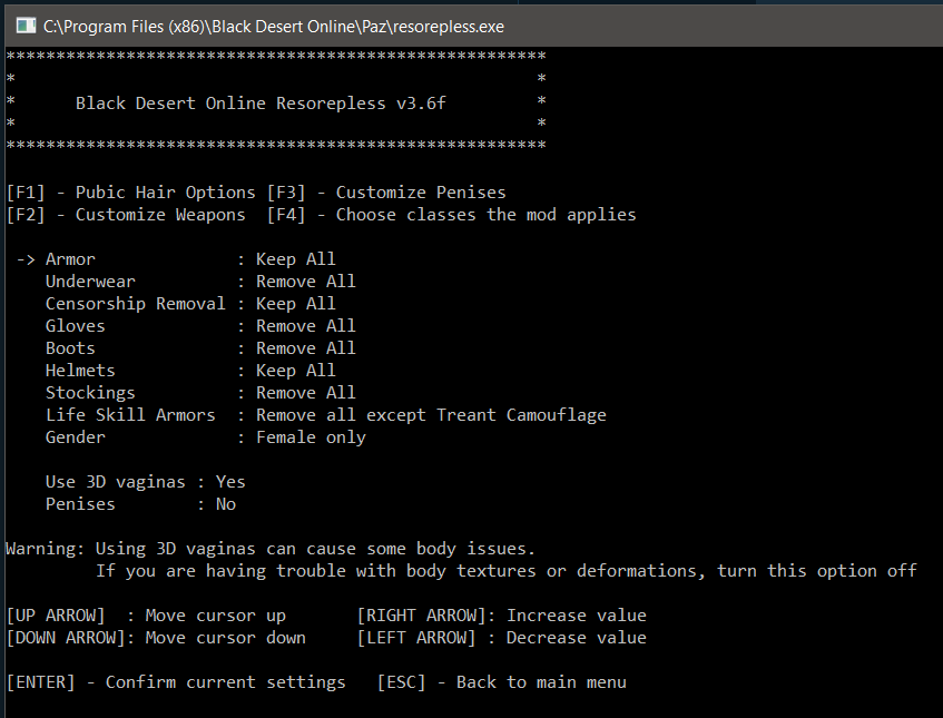 I have no such temp folder. After installing the game (with it being up to date after a clean installation), i remember installing the BDOtoolkit then running resorepless fallowed by meta injector (i added a few textures of my own edition) every consecutive update i ran the Restore N' Patch, after the update was done, i ran the meta injector again then launched the game without using the Restore N' Patch again. only using it again when a new update came along. Also want to note that i did not use the Restore N' Patch shortcut with the -idle command, basically i have been running the exe. The screen was taken today, and the neck issue is related to the old texture i re-installed yesterday and there is a difference in tone... an issue that i really don't have the desire to look into and fix, every-time i log in and see the all the enhancing i need to do the desire to play this game goes out of the window. ^_^