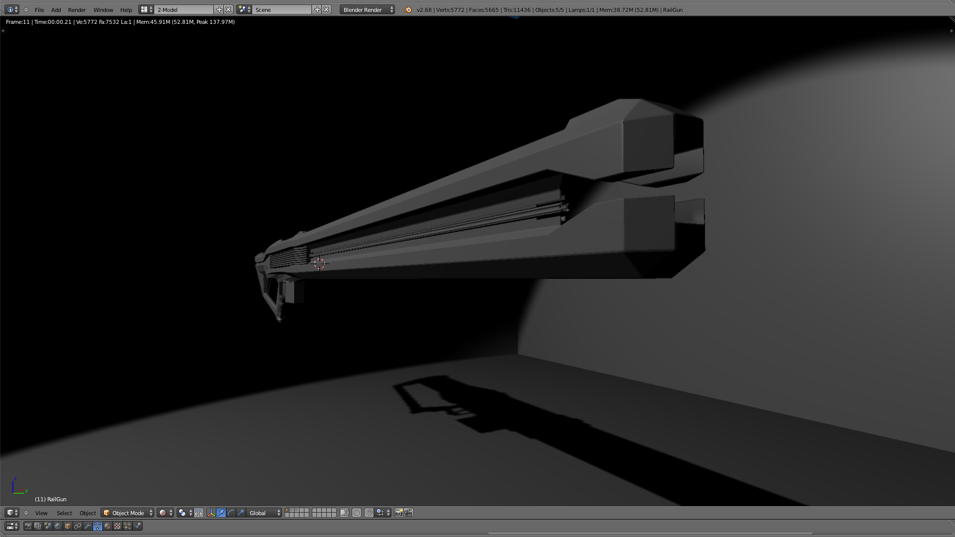 You are going to have to forgive me as this may be useless as I did a brief self study on modeling back in 2011 to learn the bare basics of the art. A good friend of mine who was going to school for video game development told me that when making a model you should strive for 4 vert faces as it translates well into most mediums. One of the reasons for that would be shading, as you can see on the mech's leg there is a 5 vert face which has the shadow awkwardly split in two creating a jarring appearance in contrast with the rest of shade space on the model. Evidently most video games over the past 16 years ended up using Tri's for models due to simplicity of calculating the surface space.