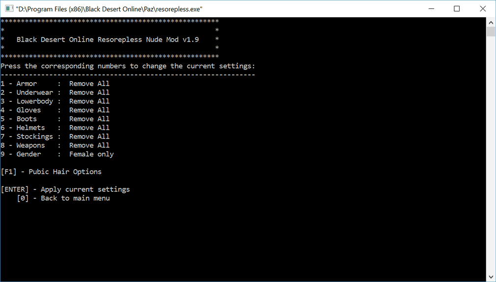 To clarify, you replaced the original nude mod texture files in Black Desert Online\Paz\patcher_resources\texture with the pubic hair ones suzu posted and then ran resorepless.exe and applied the patch as normal, right? 'Cause that's what I'm doing and nothing changes, they're still all shaved. I'm confused.