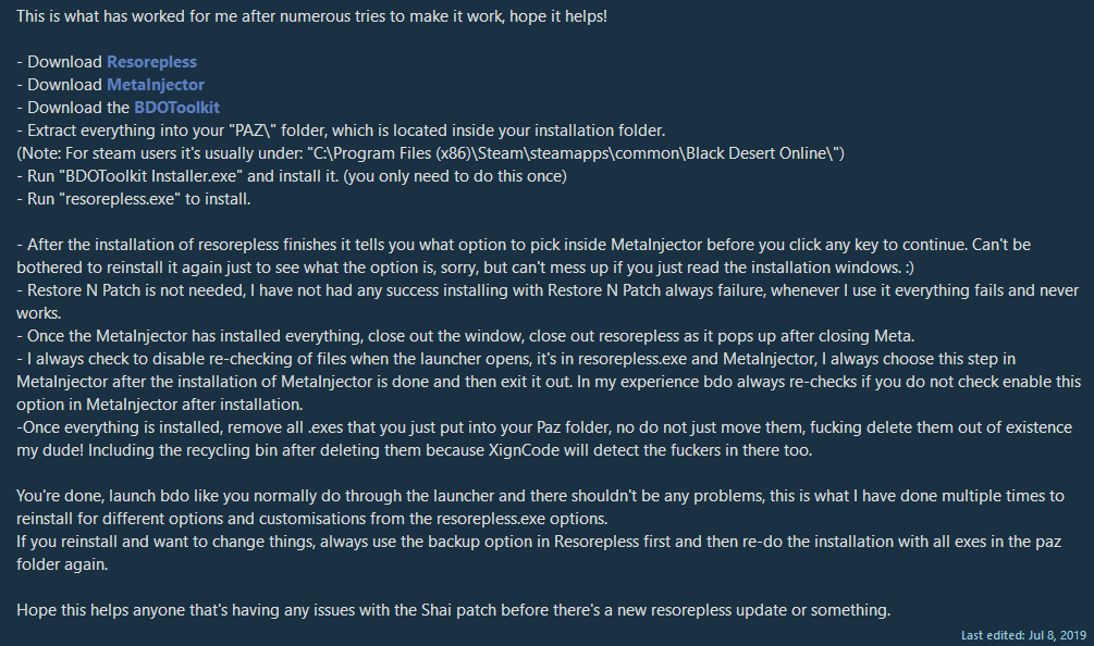 I used resorepless backup and meta injector backup to remove the mod before patching but after reinstall the launcher always catches it.