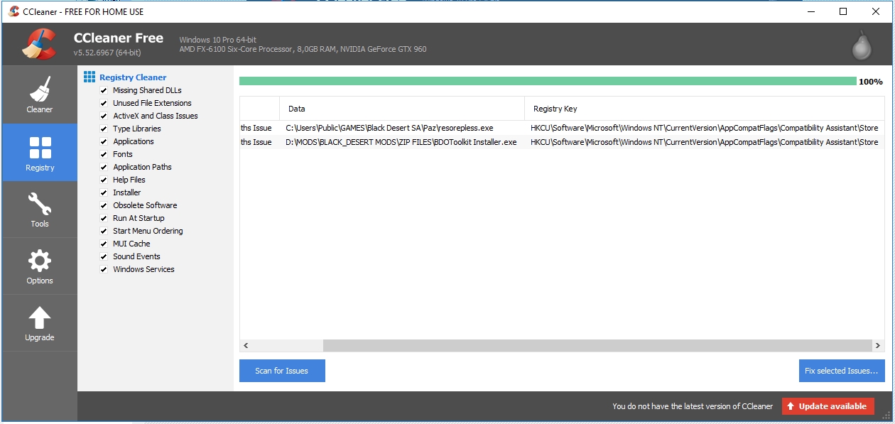 4 - run "ccleaner" and fix all issues from resorepless and BDOToolkit