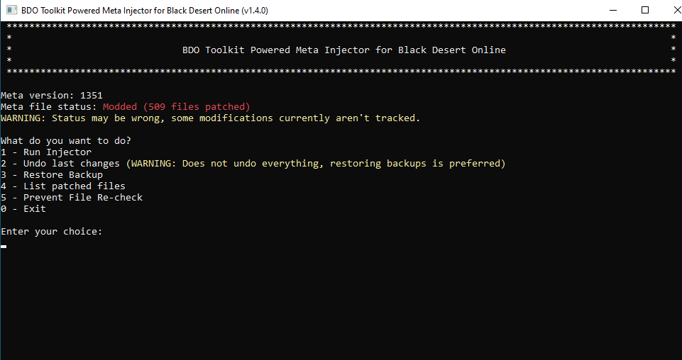 hit enter and let the injector do its thing. after the installation is complete you should be back in the menu from the first picture. Select option 5 and hit enter again. after that you can close the application through "exit" and delete it from your pc. Wait a few minutes after emptying the trashcan and launch your game.