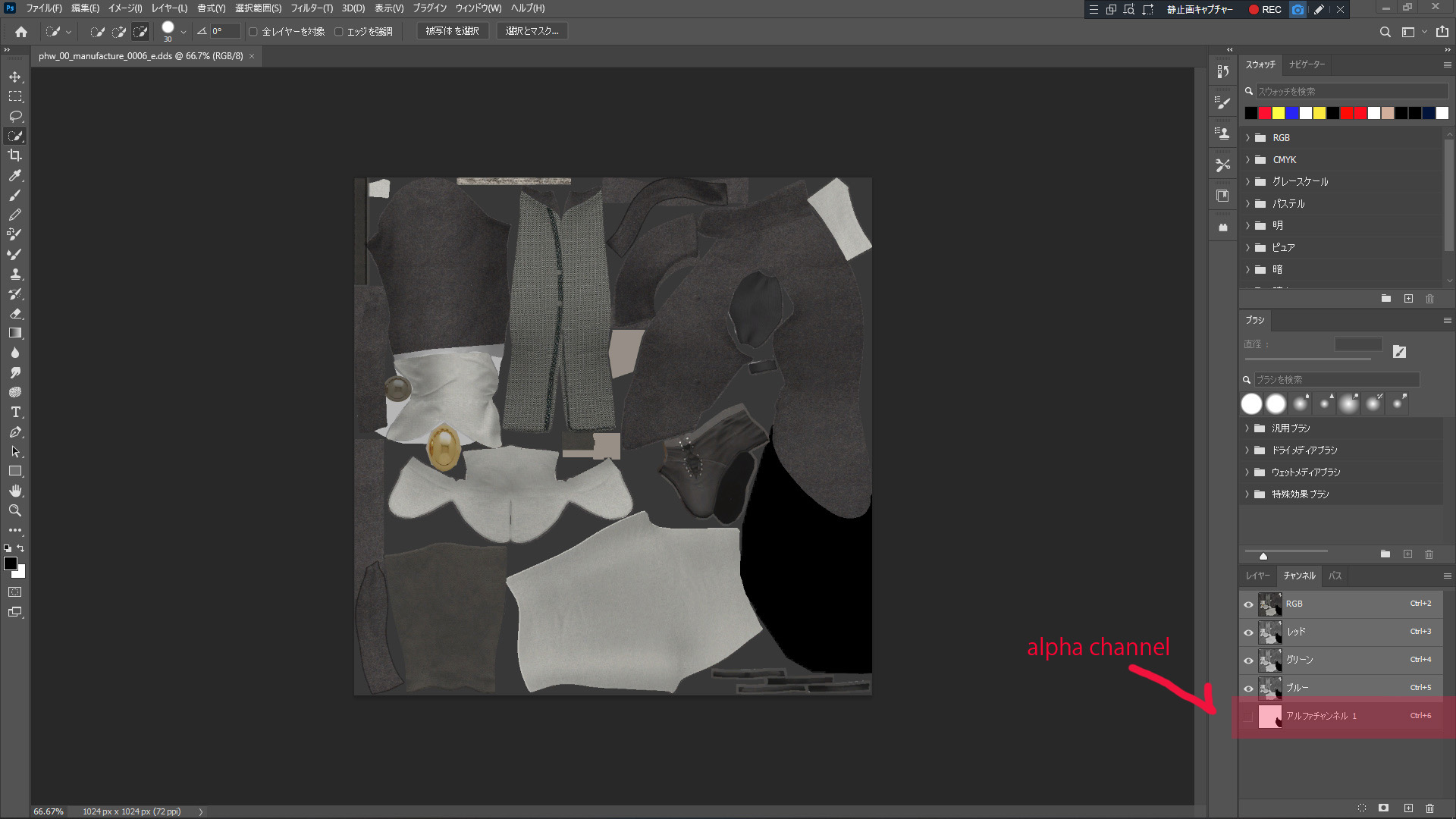 Activate switching to alpha channel.