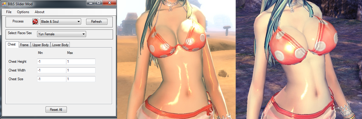 This a simple tool that lets you go beyond (or below) the regular slider limits in Blade & Soul, allowing you to truly fully customize your character. Supports all character sliders in the game.