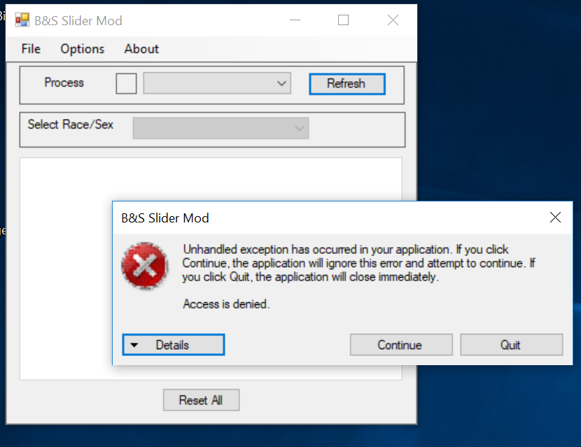 I keep receiving the error message saying "Could not connect to B&S process memory. Could not open the process"
